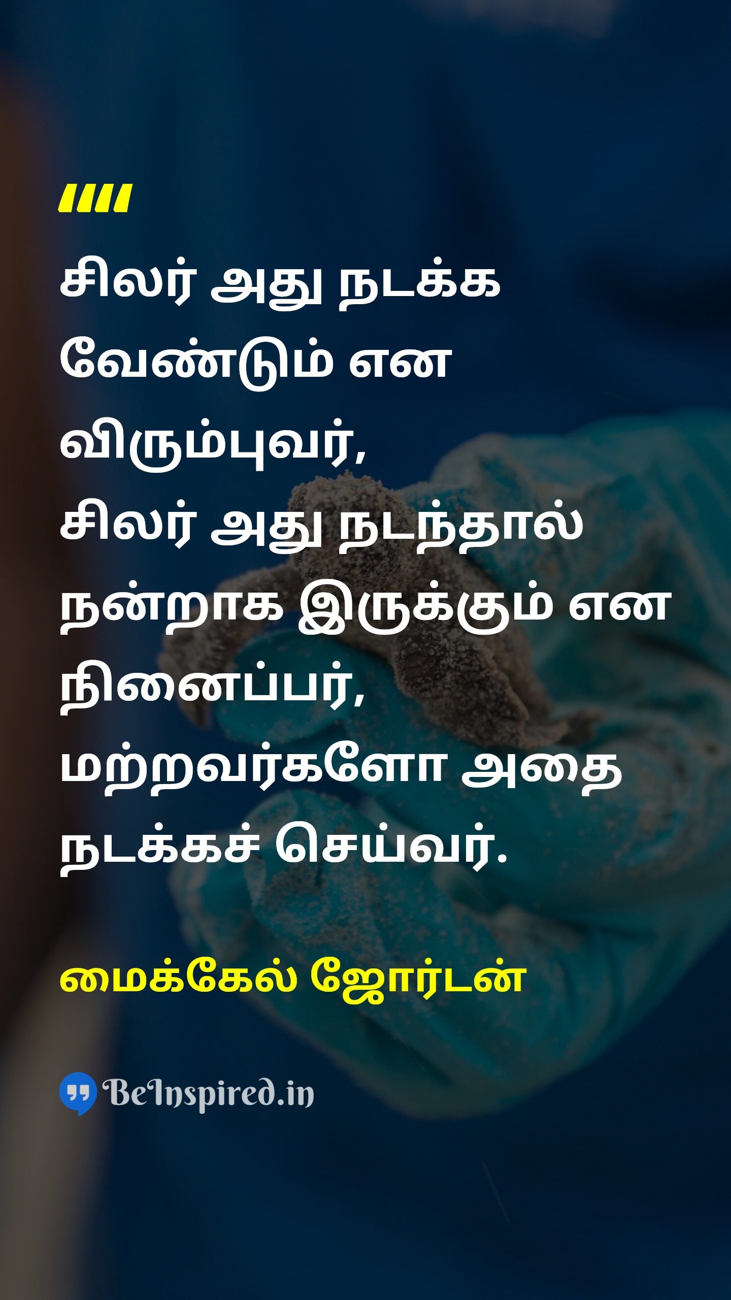 வெற்றி என்பது செயலுடன் தொடர்புடையது. வெற்றியாளர்கள் தொடர்ந்து செயல்படுவார்கள். அவர்கள் தவறுகள் செய்வார்கள், ஆனால் கைவிடமாட்டார்கள்.