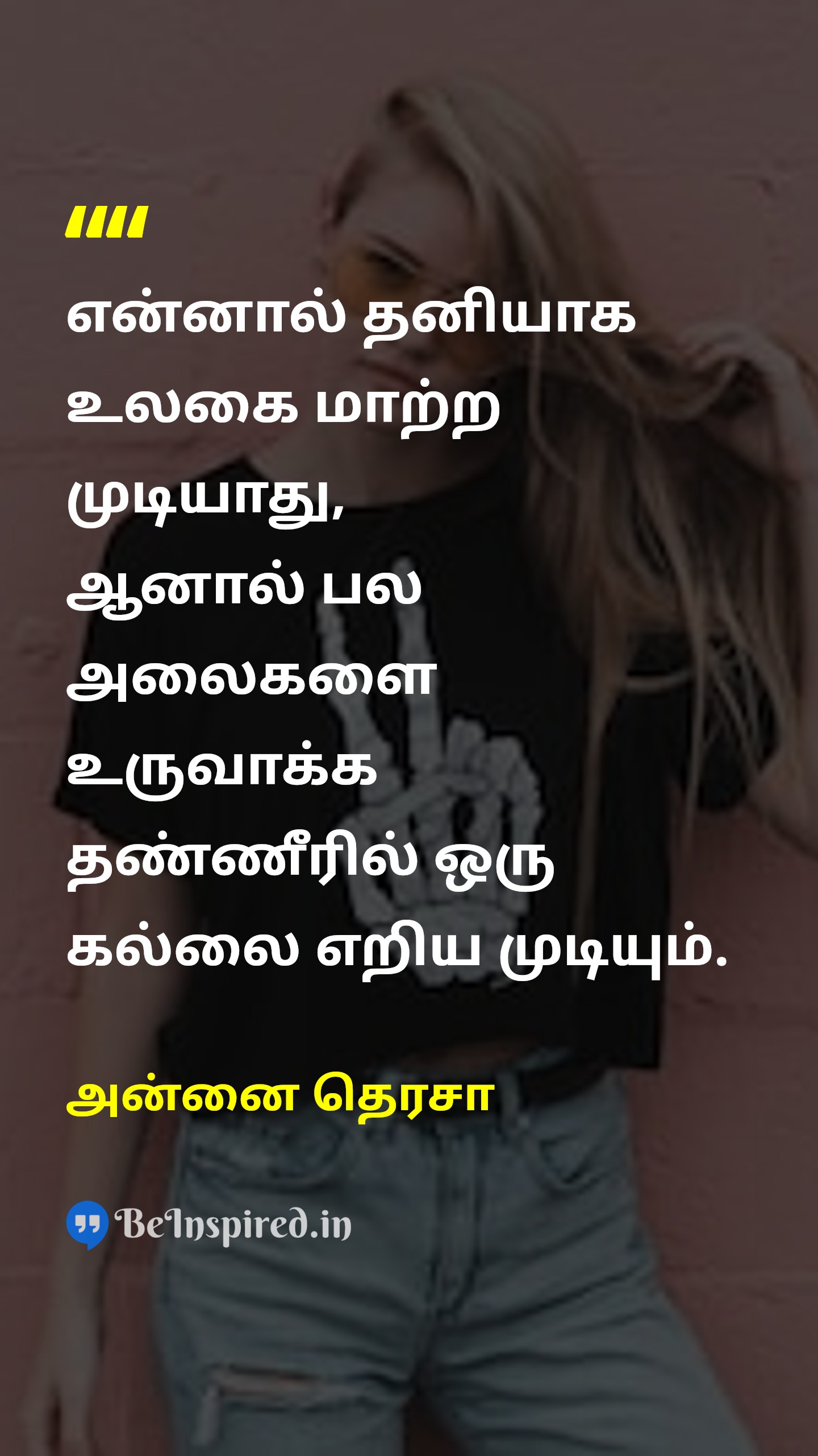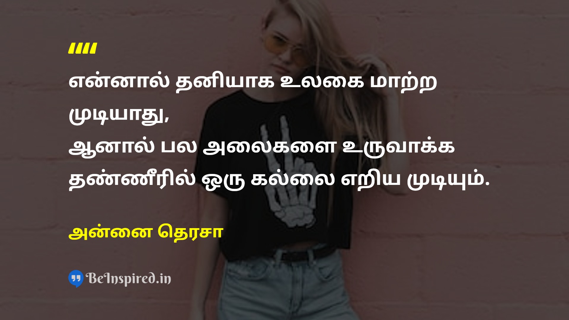 என்னால் தனியாக உலகை மாற்ற முடியாது, ஆனால் பல அலைகளை உருவாக்க தண்ணீரில் ஒரு கல்லை எறிய முடியும்.
