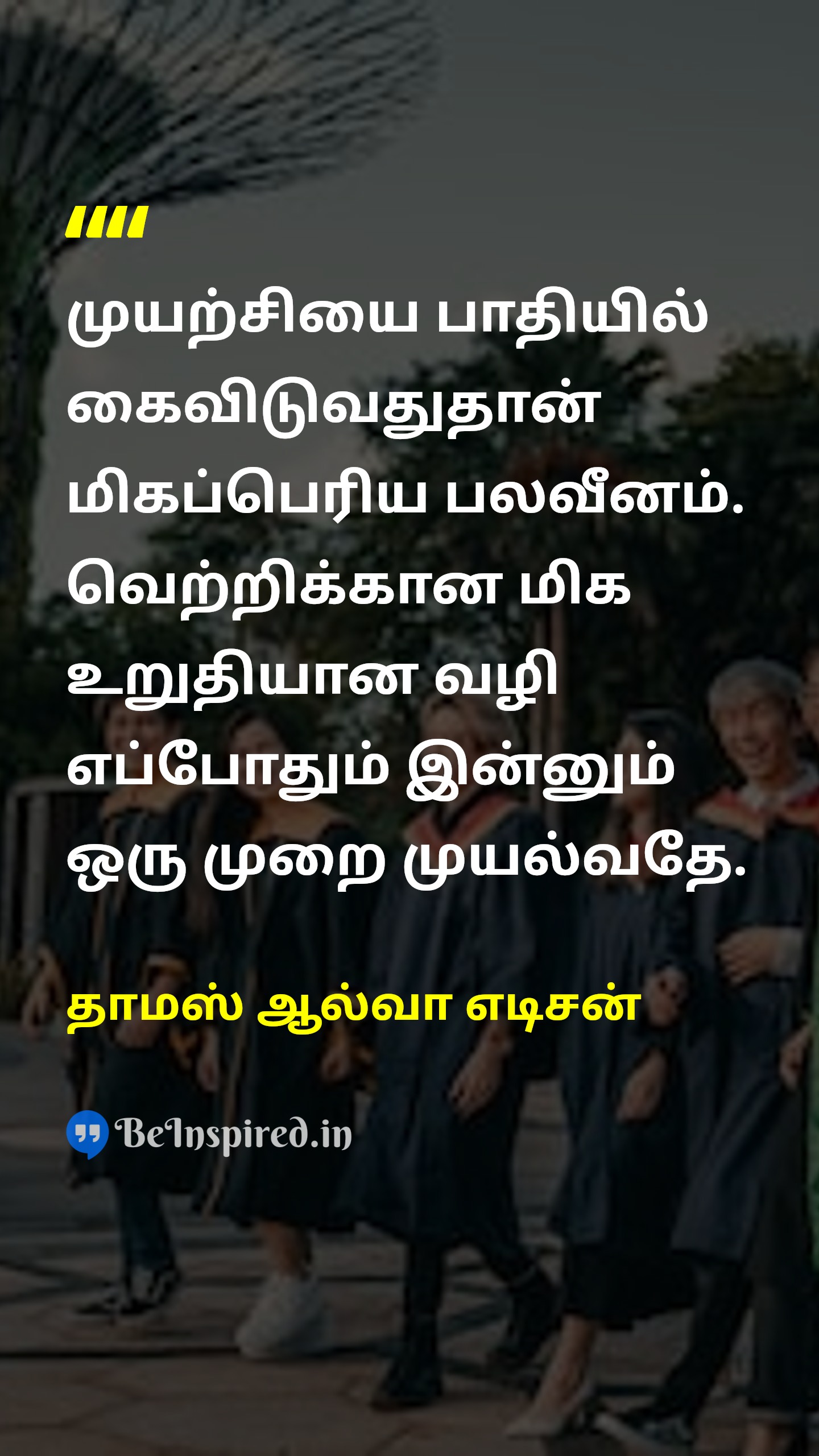 தோல்வியிலும், தொடர் முயற்சியை மேற்கொள்பவர்களுக்கே வெற்றி சாத்தியம்.