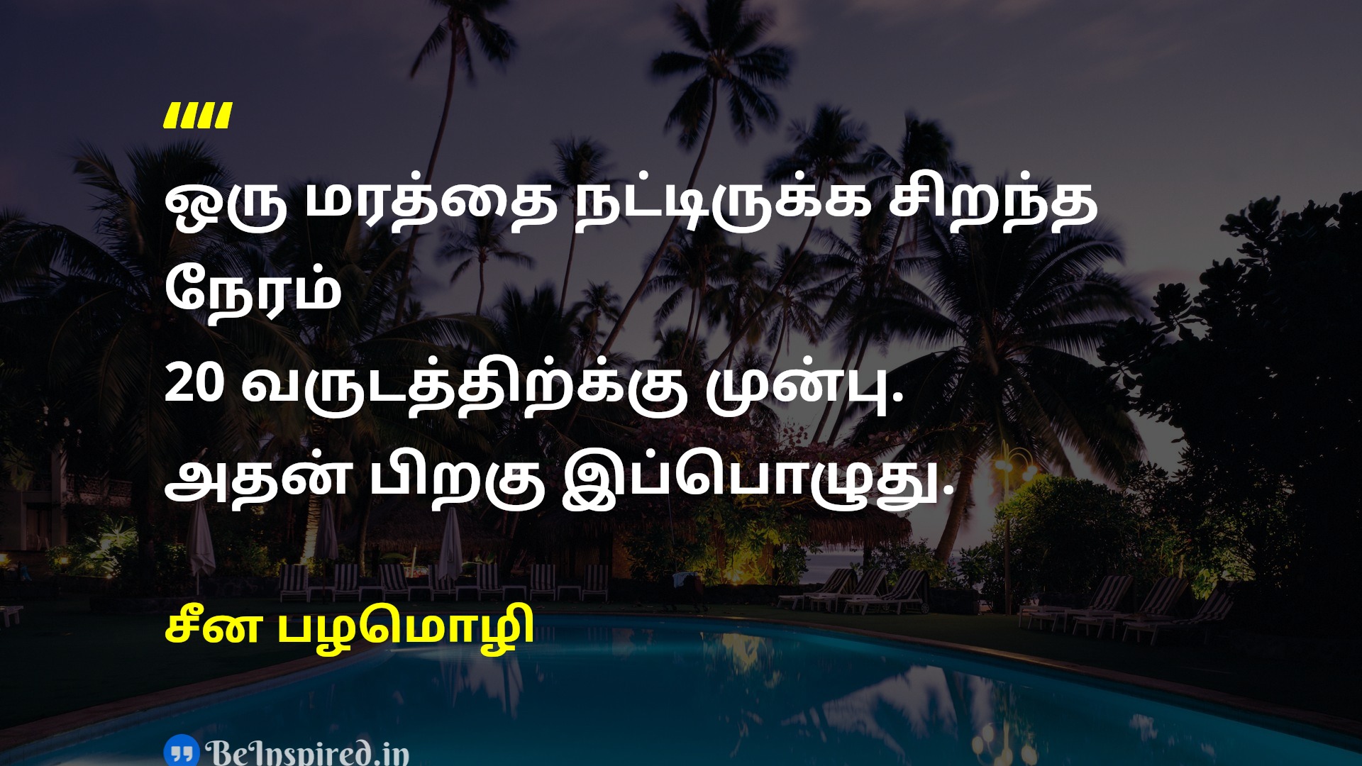 ஒரு மரத்தை நட்டிருக்க சிறந்த நேரம் 20 வருடத்திற்க்கு முன்பு. அதன் பிறகு இப்பொழுது.