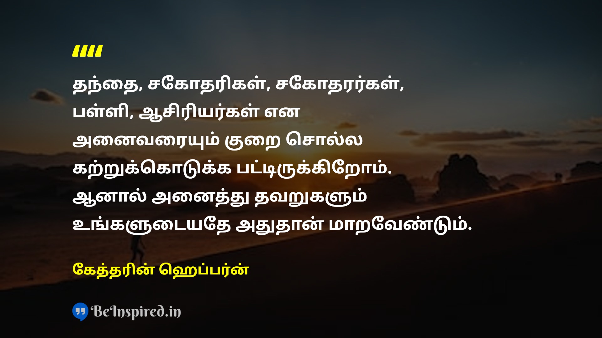 தந்தை, சகோதரிகள், சகோதரர்கள், பள்ளி, ஆசிரியர்கள் என அனைவரையும் குறை சொல்ல கற்றுக்கொடுக்க பட்டிருக்கிறோம். ஆனால் அனைத்து தவறுகளும் உங்களுடையதே அதுதான் மாறவேண்டும்.