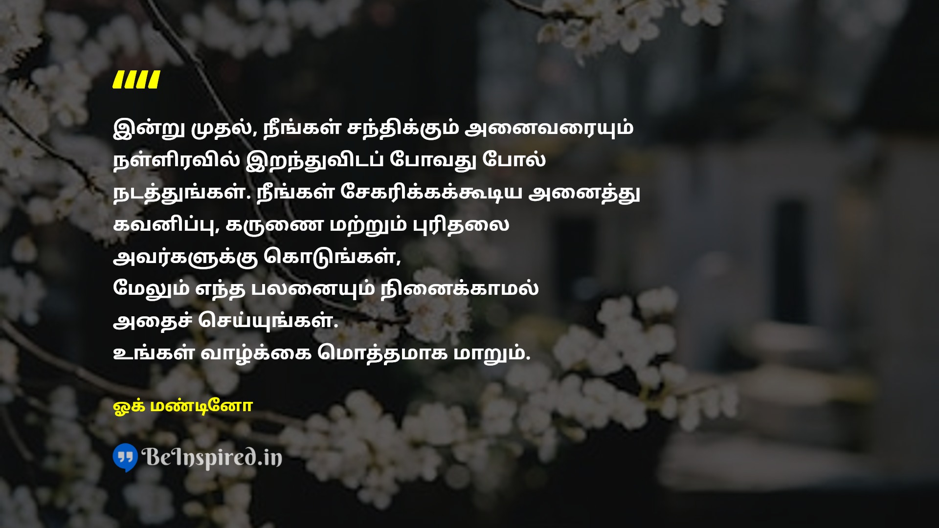 இன்று முதல், நீங்கள் சந்திக்கும் அனைவரையும் நள்ளிரவில் இறந்துவிடப் போவது போல் நடத்துங்கள். நீங்கள் சேகரிக்கக்கூடிய அனைத்து கவனிப்பு, கருணை மற்றும் புரிதலை அவர்களுக்கு கொடுங்கள், மேலும் எந்த பலனையும் நினைக்காமல் அதைச் செய்யுங்கள். உங்கள் வாழ்க்கை மொத்தமாக மாறும்.