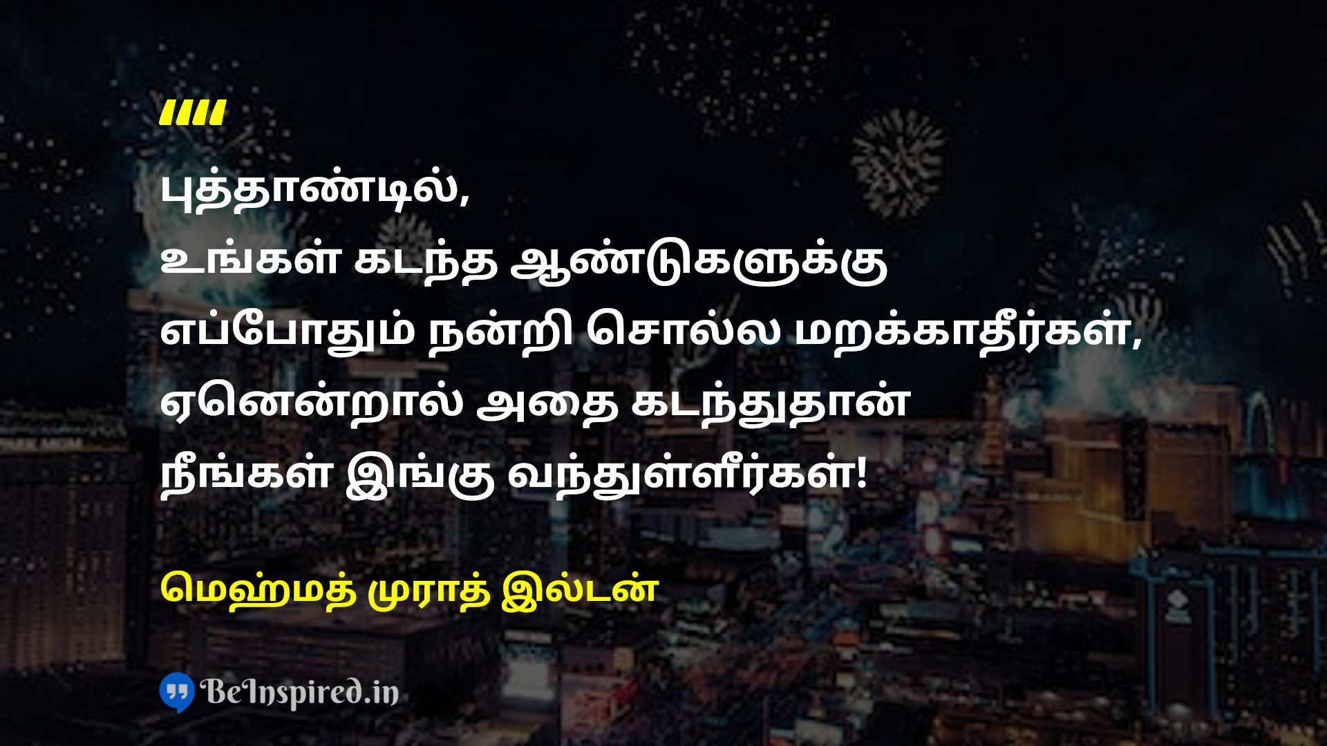 புத்தாண்டில், உங்கள் கடந்த ஆண்டுகளுக்கு எப்போதும் நன்றி சொல்ல மறக்காதீர்கள், ஏனென்றால் அதை கடந்துதான் நீங்கள் இங்கு வந்துள்ளீர்கள்!