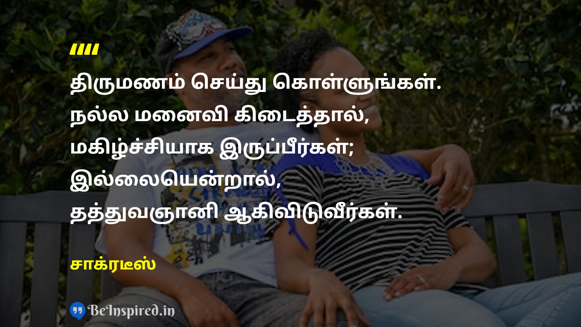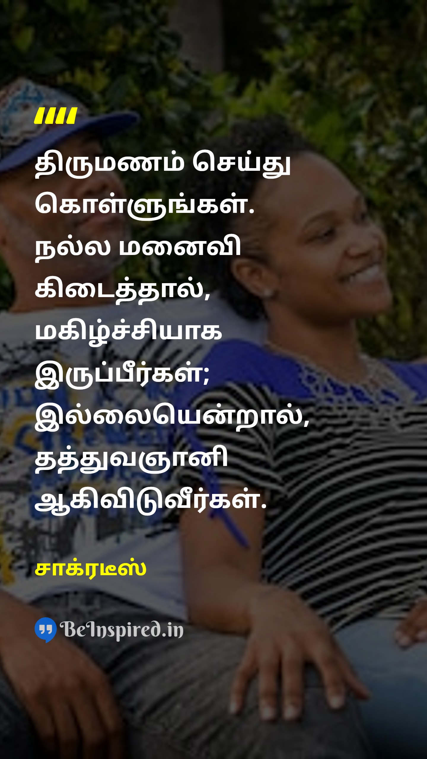 திருமணம் செய்து கொள்ளுங்கள். நல்ல மனைவி கிடைத்தால், மகிழ்ச்சியாக இருப்பீர்கள்; இல்லையென்றால், தத்துவஞானி ஆகிவிடுவீர்கள்.