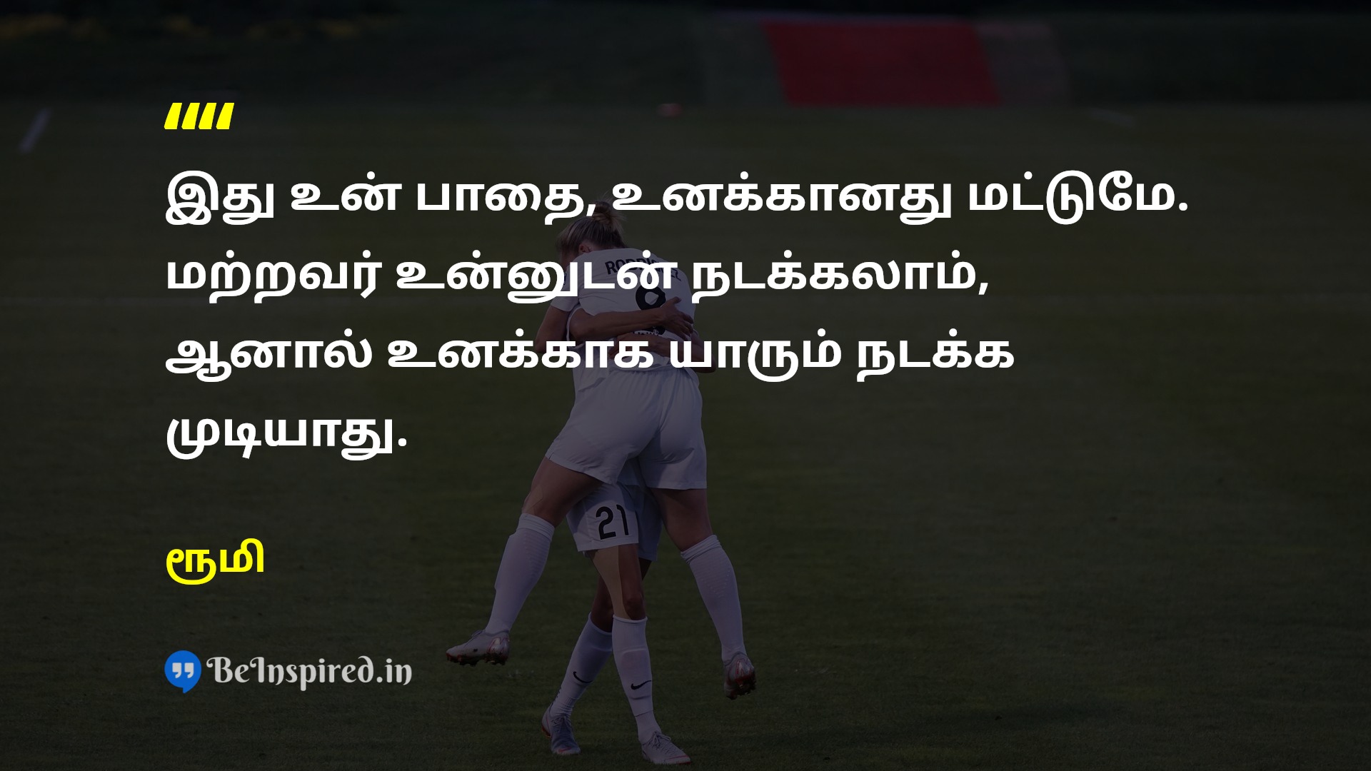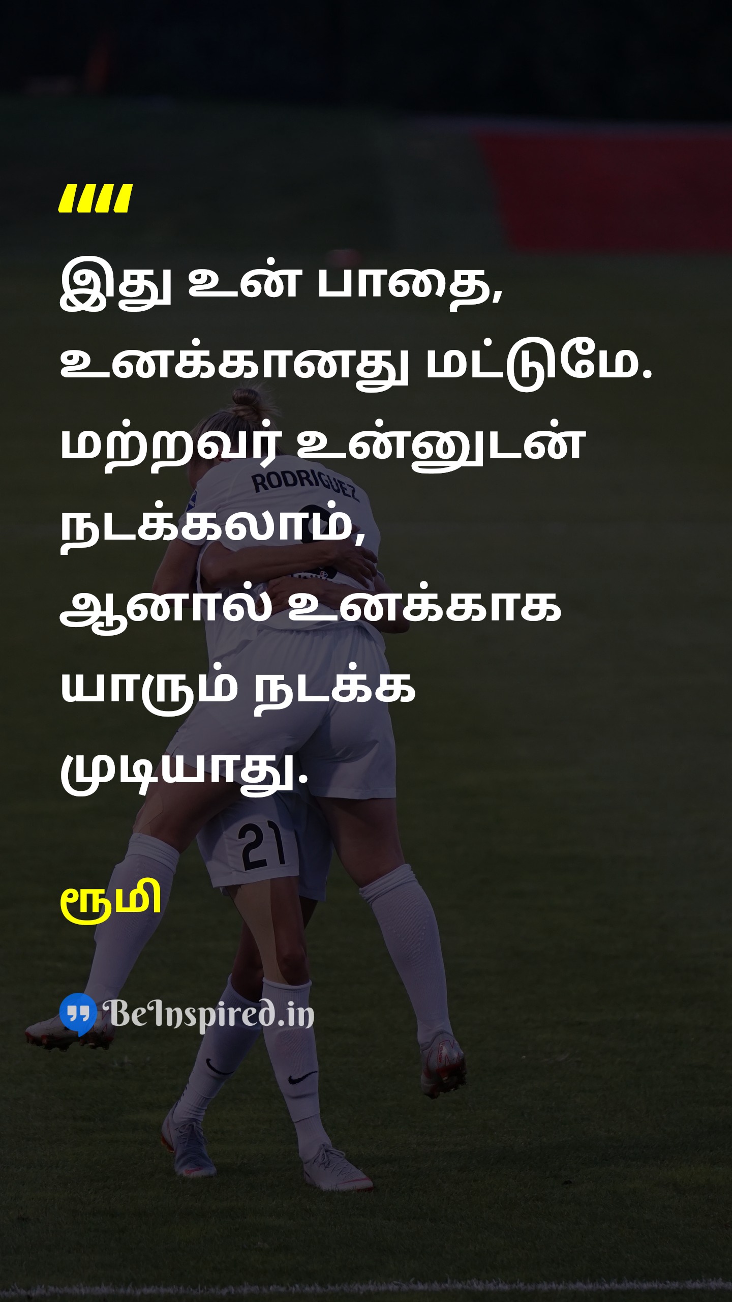 இது உன் பாதை, உனக்கானது மட்டுமே. மற்றவர் உன்னுடன் நடக்கலாம், ஆனால் உனக்காக யாரும் நடக்க முடியாது.