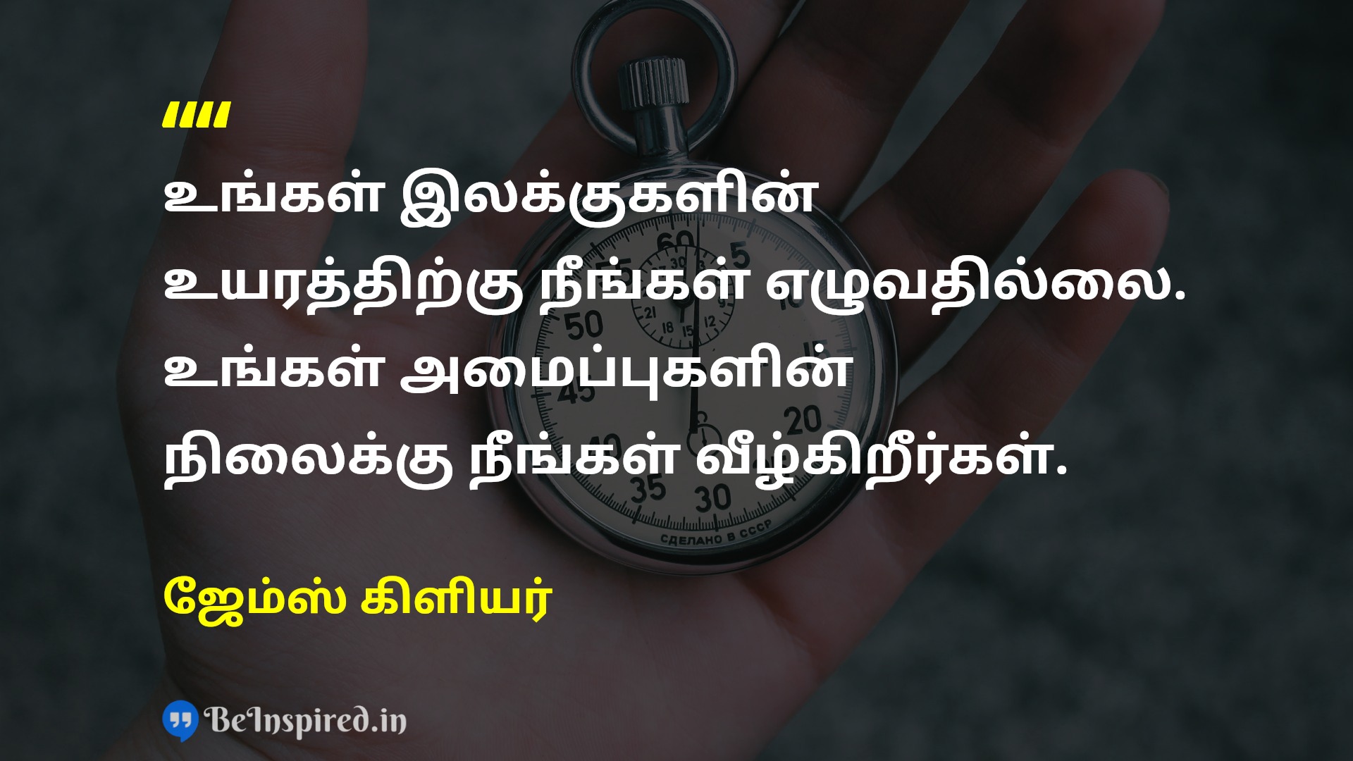 உங்கள் இலக்குகளின் உயரத்திற்கு நீங்கள் எழுவதில்லை. உங்கள் அமைப்புகளின் நிலைக்கு நீங்கள் வீழ்கிறீர்கள்.