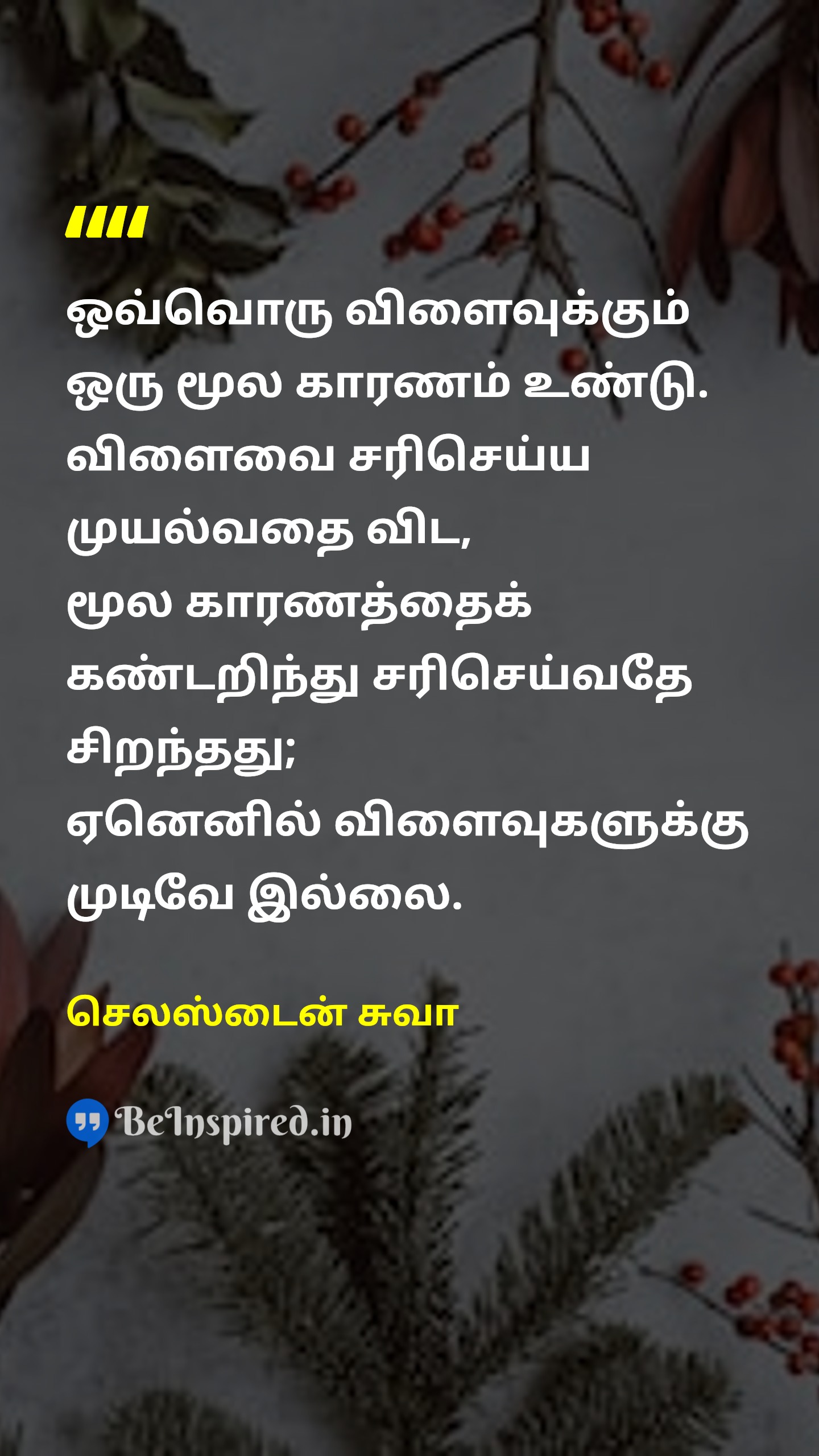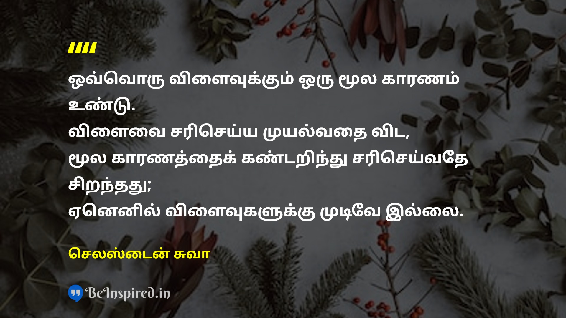 ஒவ்வொரு விளைவுக்கும் ஒரு மூல காரணம் உண்டு. விளைவை சரிசெய்ய முயல்வதை விட, மூல காரணத்தைக் கண்டறிந்து சரிசெய்வதே சிறந்தது; ஏனெனில் விளைவுகளுக்கு முடிவே இல்லை.