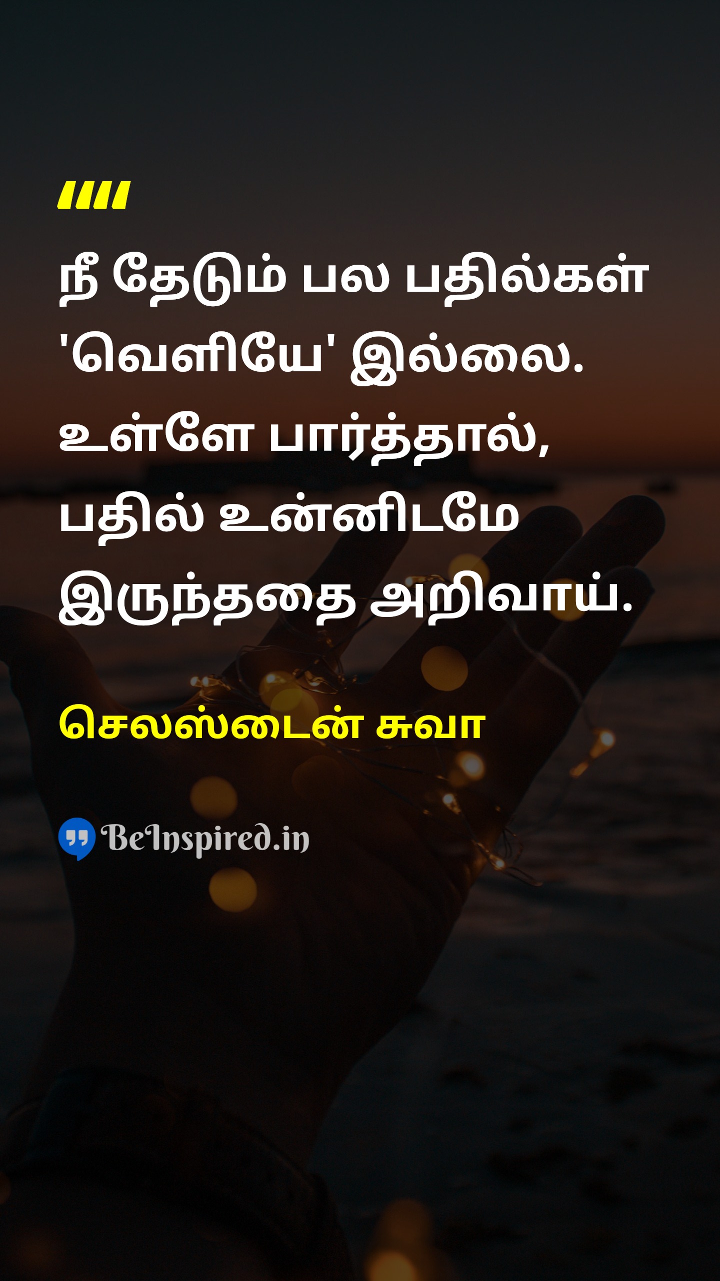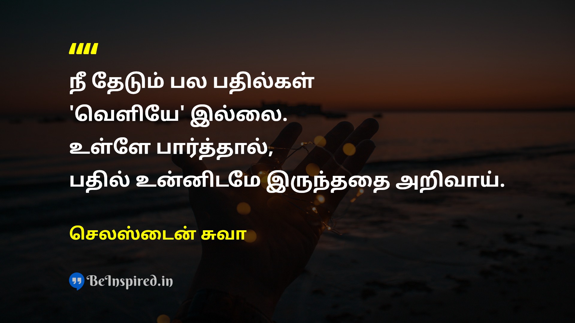 நீ தேடும் பல பதில்கள் 'வெளியே' இல்லை. உள்ளே பார்த்தால், பதில் உன்னிடமே இருந்ததை அறிவாய்.