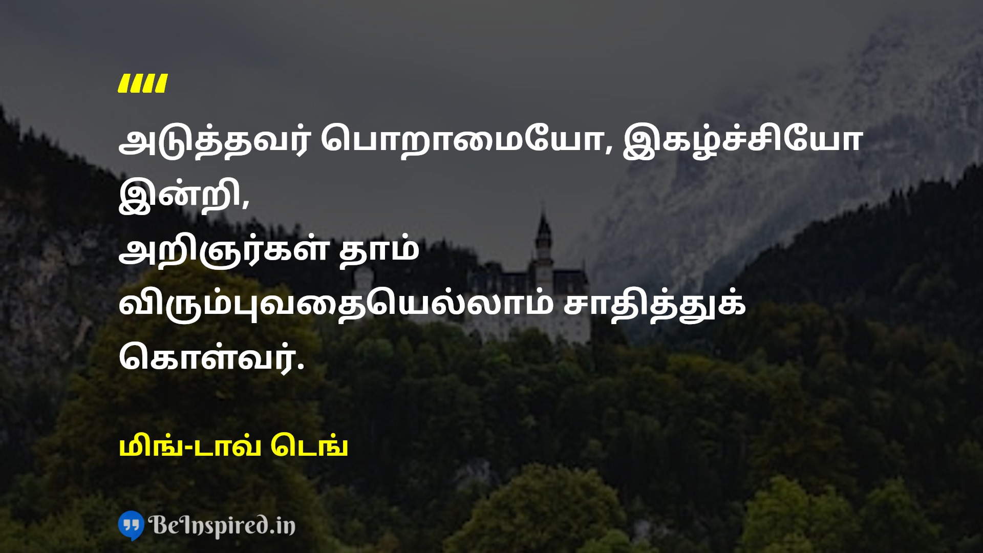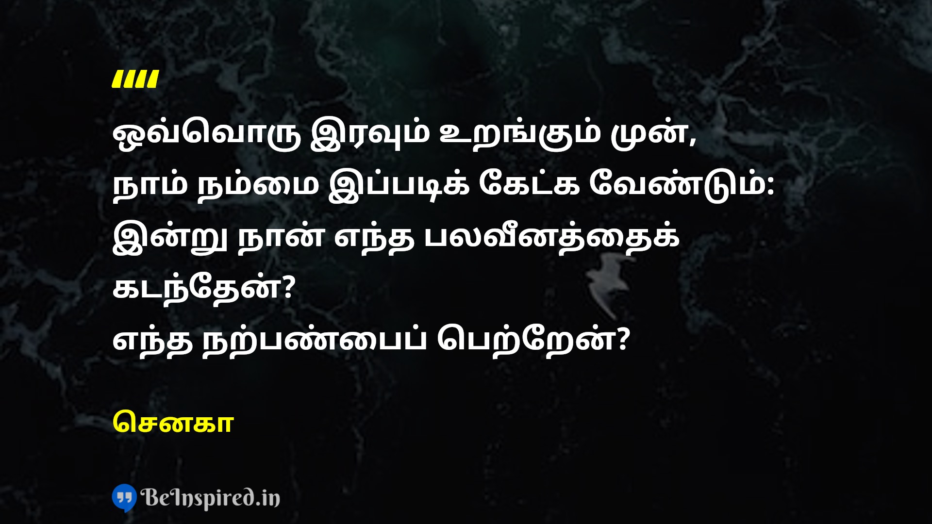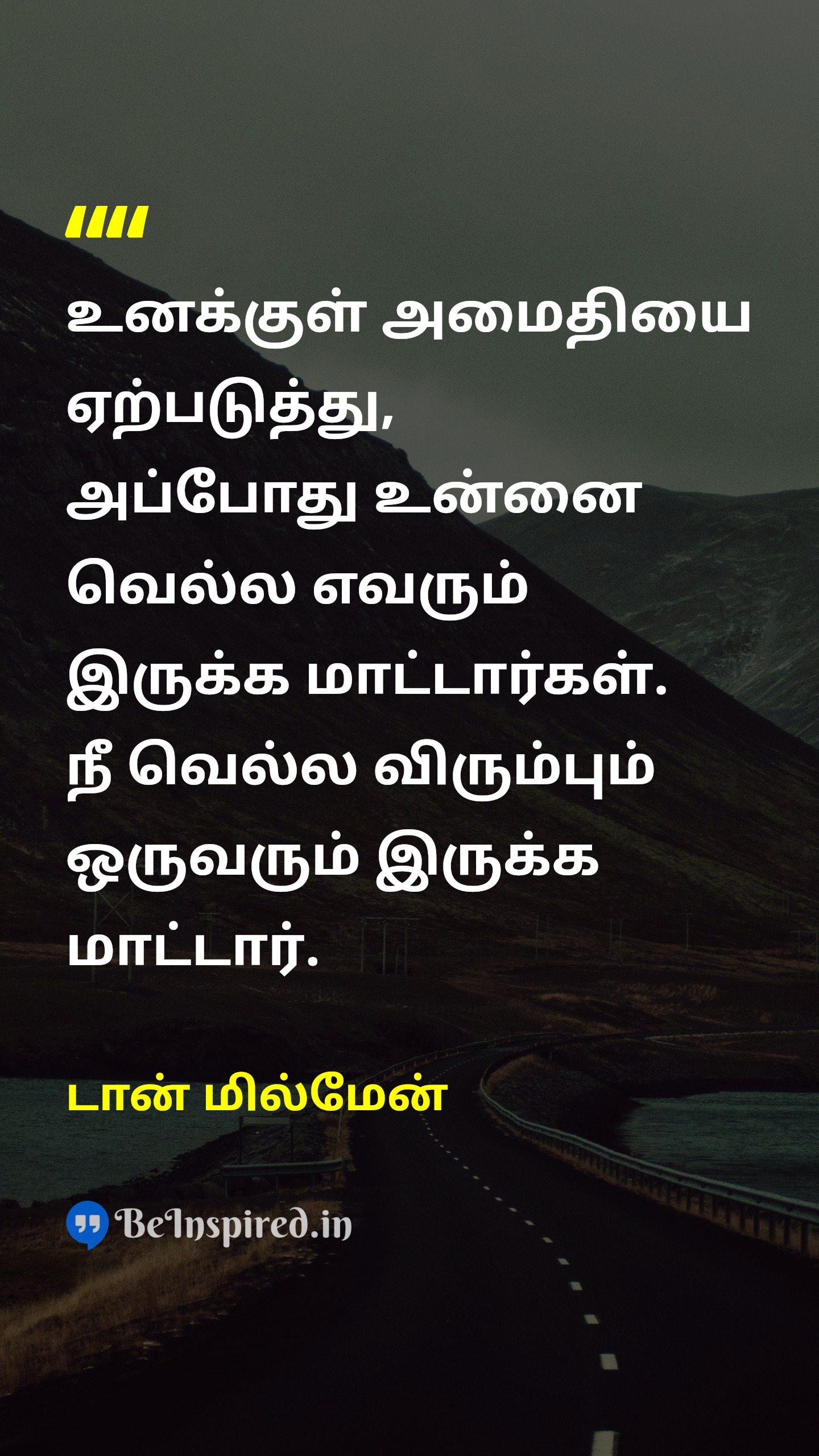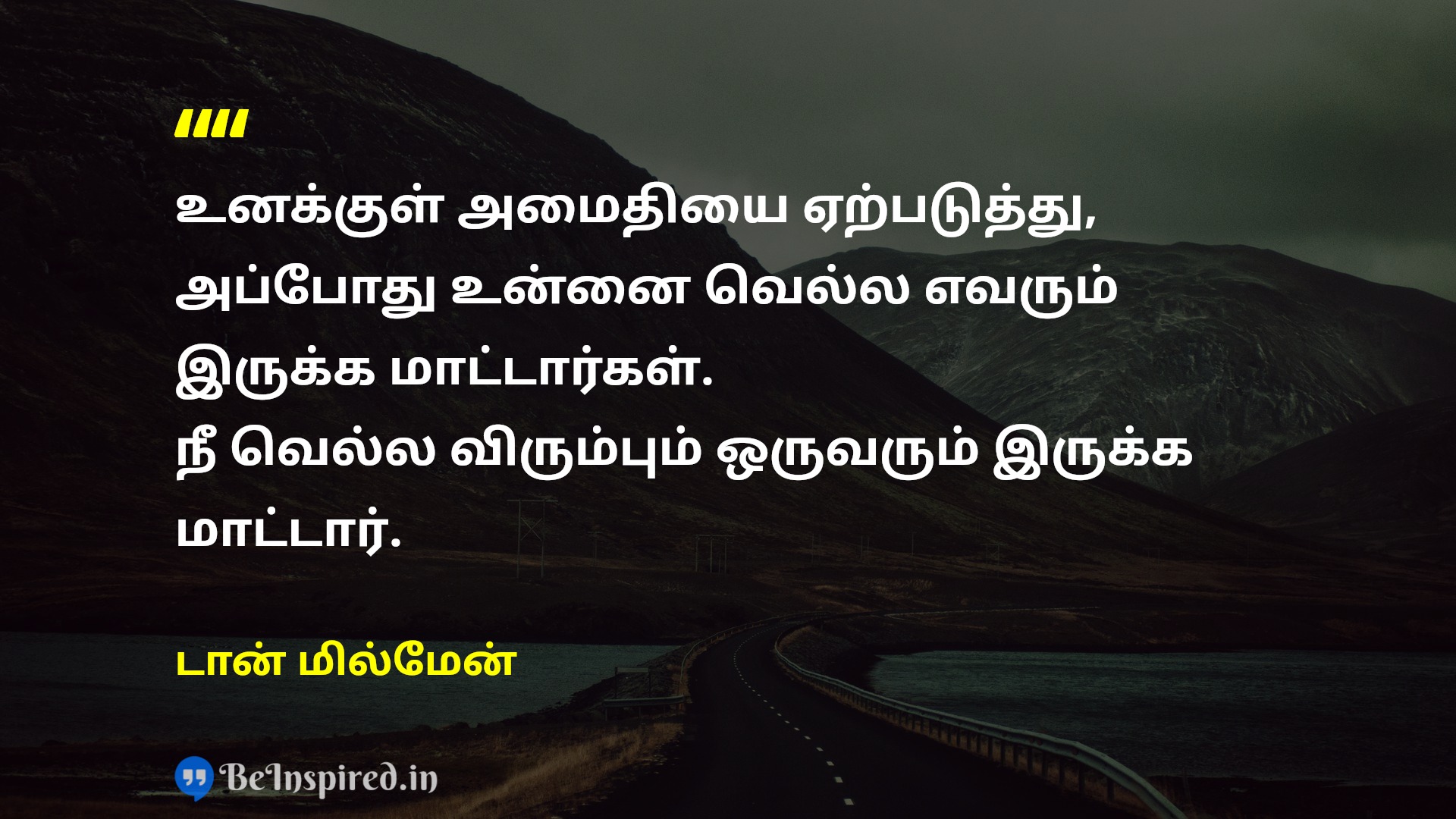 உனக்குள் அமைதியை ஏற்படுத்து, அப்போது உன்னை வெல்ல எவரும் இருக்க மாட்டார்கள். நீ வெல்ல விரும்பும் ஒருவரும் இருக்க மாட்டார்.
