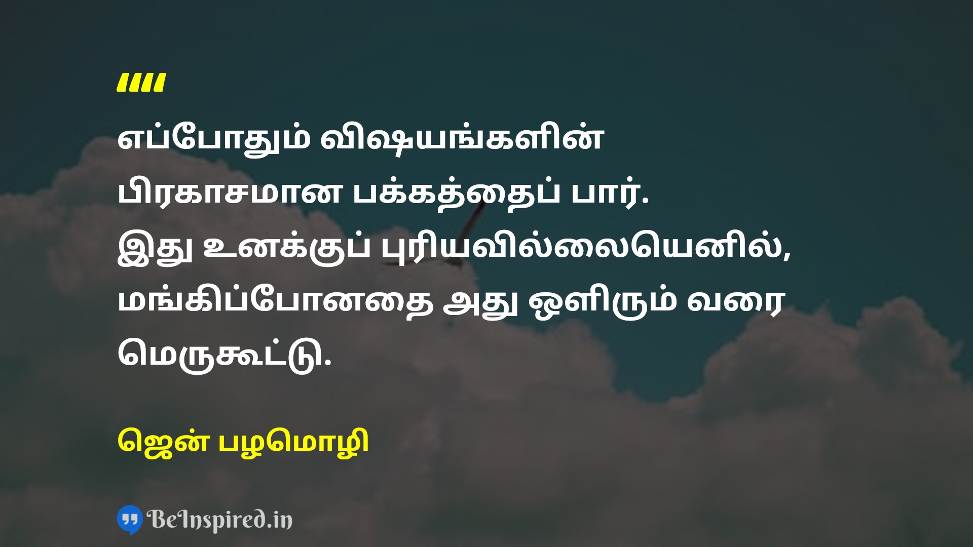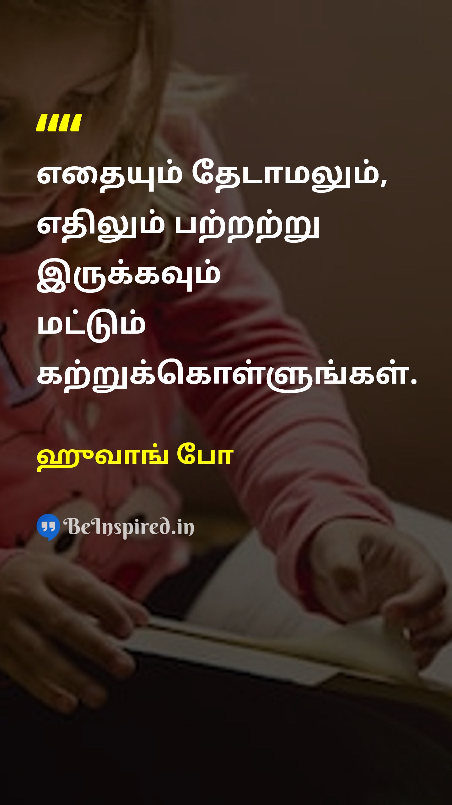 நேற்றை மறந்துவிடு - அது உன்னை ஏற்கனவே மறந்துவிட்டது. நாளை பற்றி கவலைப்படாதே - அதை நீ இன்னும் சந்திக்கவில்லை. அதற்கு பதிலாக, கண்களையும் இதயத்தையும் திற - இன்றைய ஒரு விலைமதிப்பற்ற பரிசிற்காக.