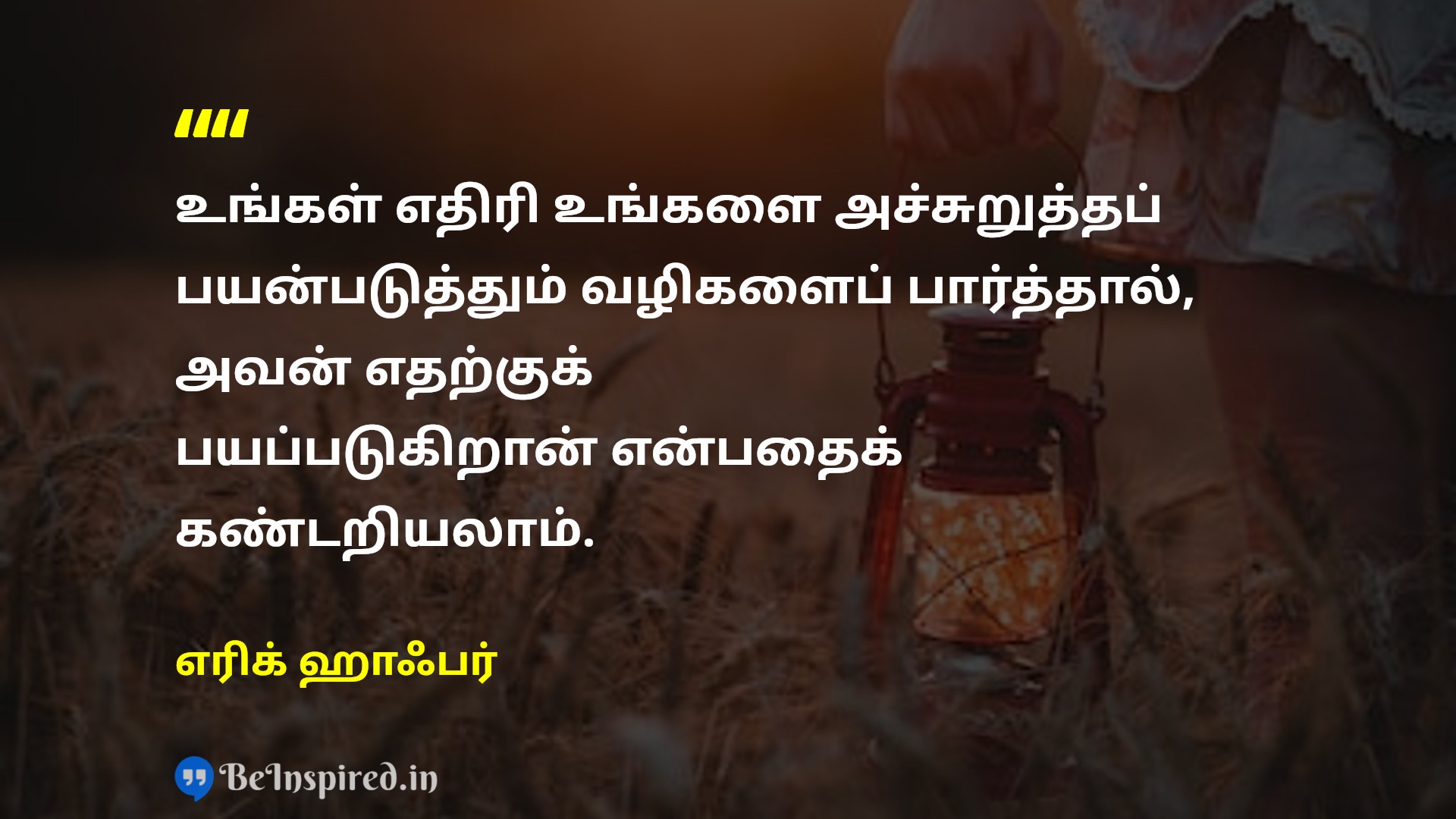 உங்கள் எதிரி உங்களை அச்சுறுத்தப் பயன்படுத்தும் வழிகளைப் பார்த்தால், அவன் எதற்குக் பயப்படுகிறான் என்பதைக் கண்டறியலாம்.