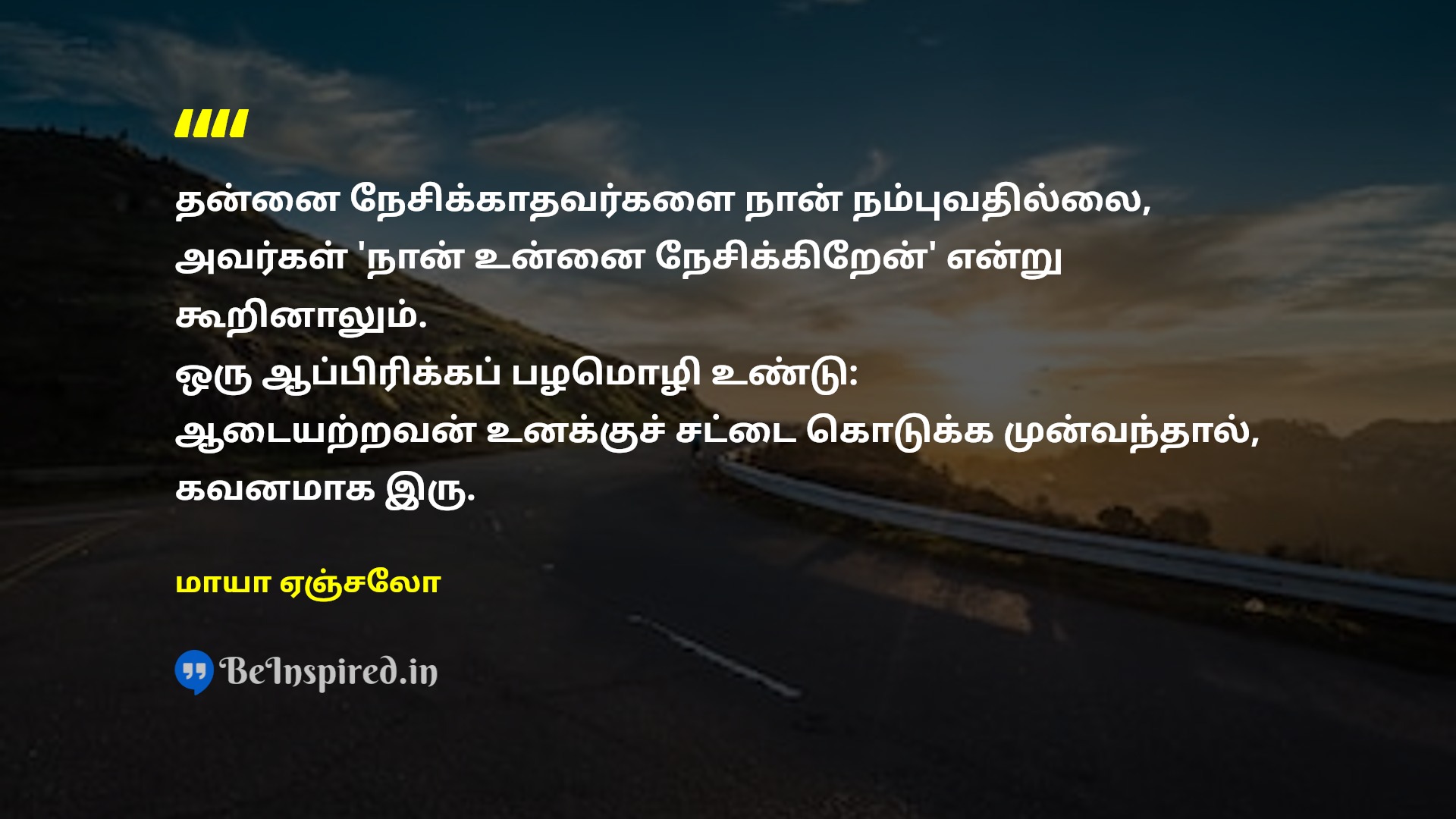 தன்னை நேசிக்காதவர்களை நான் நம்புவதில்லை, அவர்கள் 'நான் உன்னை நேசிக்கிறேன்' என்று கூறினாலும். ஒரு ஆப்பிரிக்கப் பழமொழி உண்டு: ஆடையற்றவன் உனக்குச் சட்டை கொடுக்க முன்வந்தால், கவனமாக இரு.