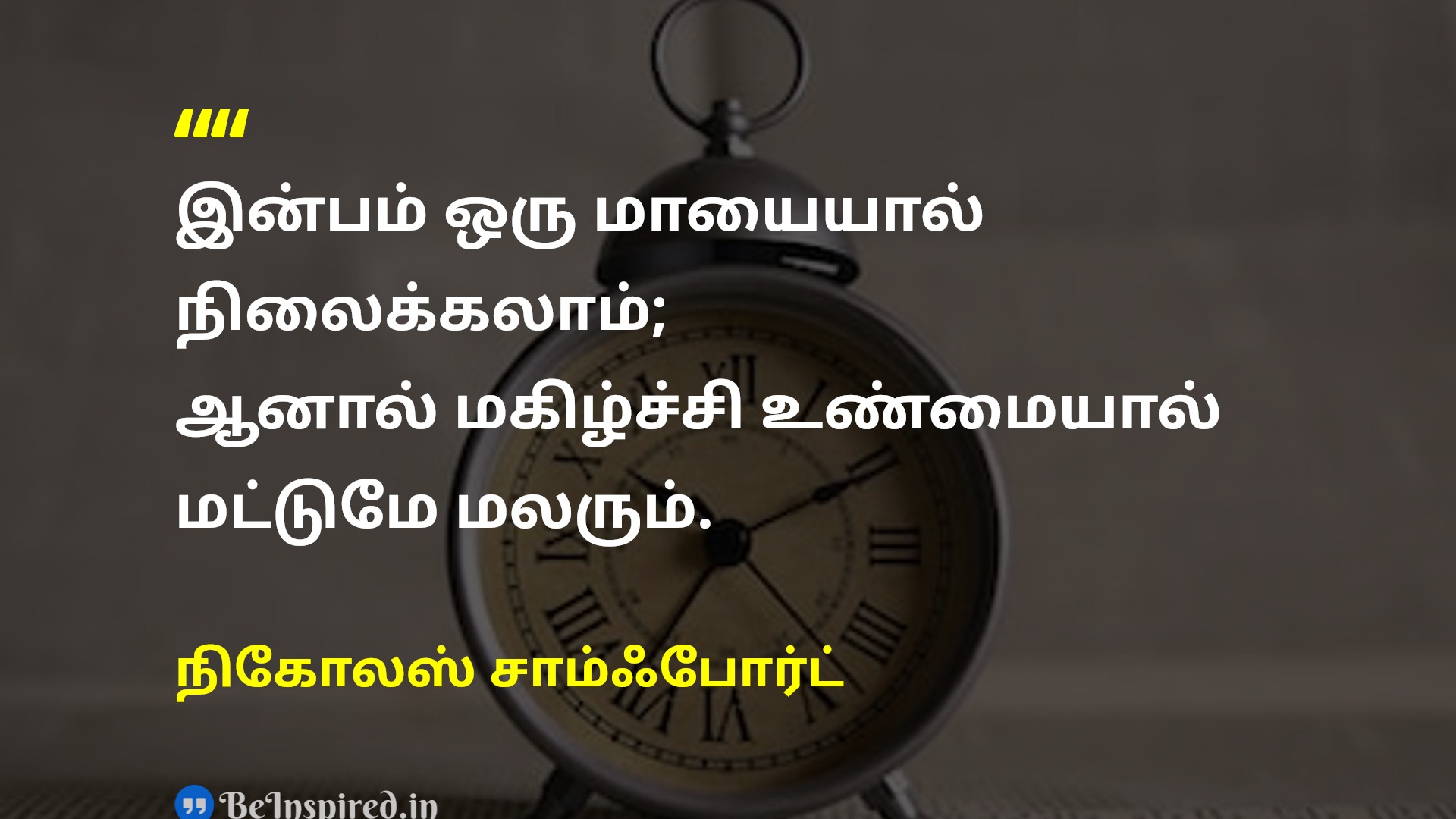 மகிழ்ச்சியின் முக்கிய அங்கம் சுயக்கட்டுப்பாடு. தன்னை வென்றவன் எவனோ, அவன் ஆழ்ந்த மகிழ்ச்சியை அறிவான், அது இதயத்தை ஆனந்தத்தால் நிரப்பும்.