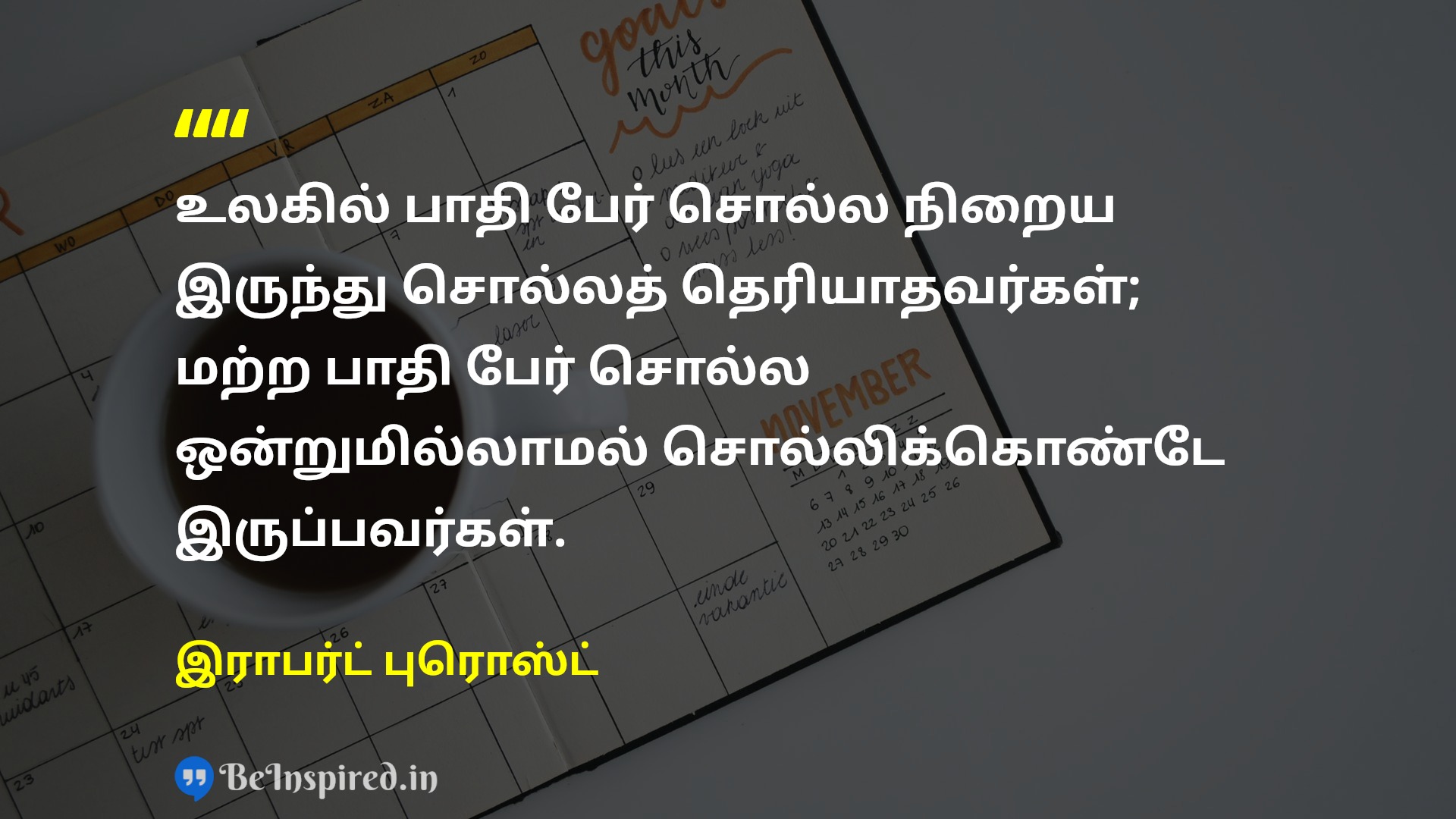 உலகில் பாதி பேர் சொல்ல நிறைய இருந்து சொல்லத் தெரியாதவர்கள்; மற்ற பாதி பேர் சொல்ல ஒன்றுமில்லாமல் சொல்லிக்கொண்டே இருப்பவர்கள்.