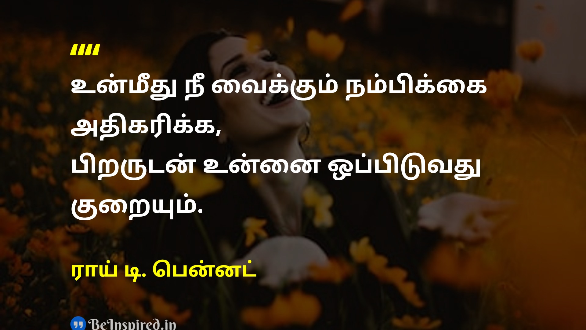 உன்மீது நீ வைக்கும் நம்பிக்கை அதிகரிக்க, பிறருடன் உன்னை ஒப்பிடுவது குறையும்.