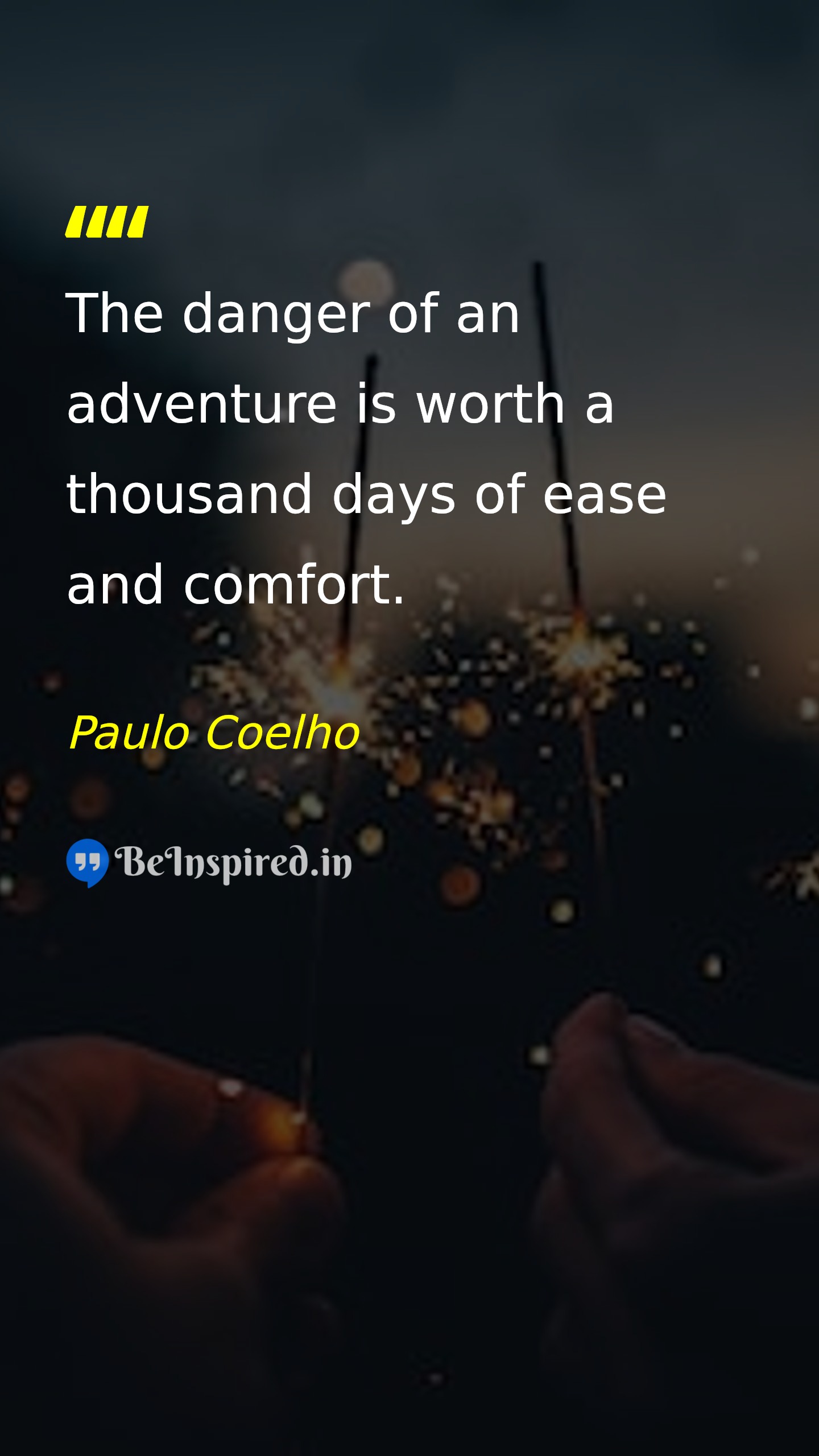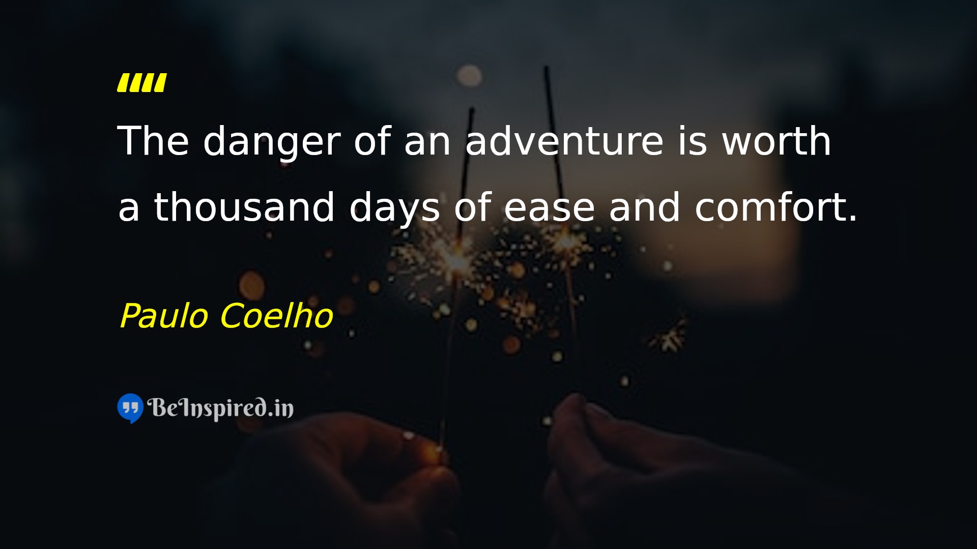The danger of an adventure is worth a thousand days of ease and comfort.