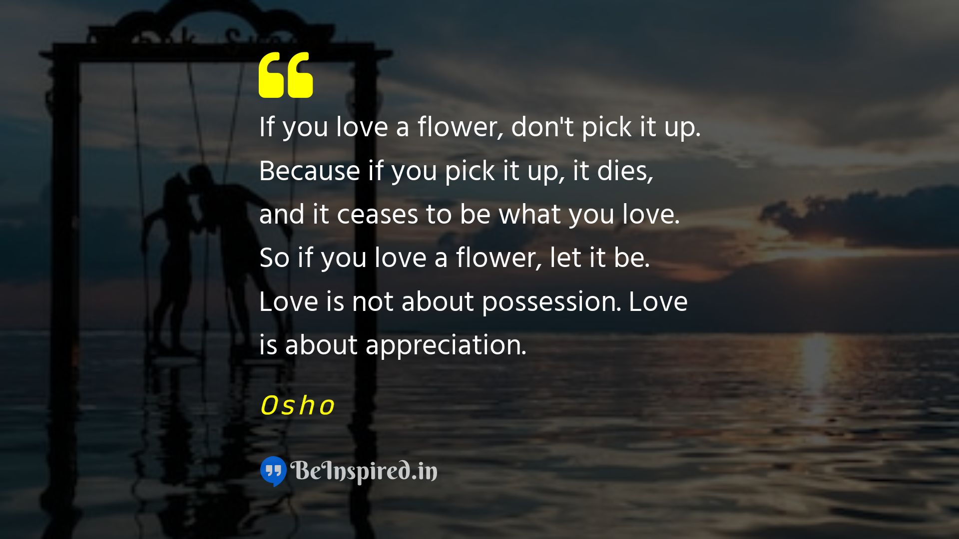 If you love a flower, don't pick it up. Because if you pick it up, it dies, and it ceases to be what you love. So if you love a flower, let it be. Love is not about possession. Love is about appreciation.