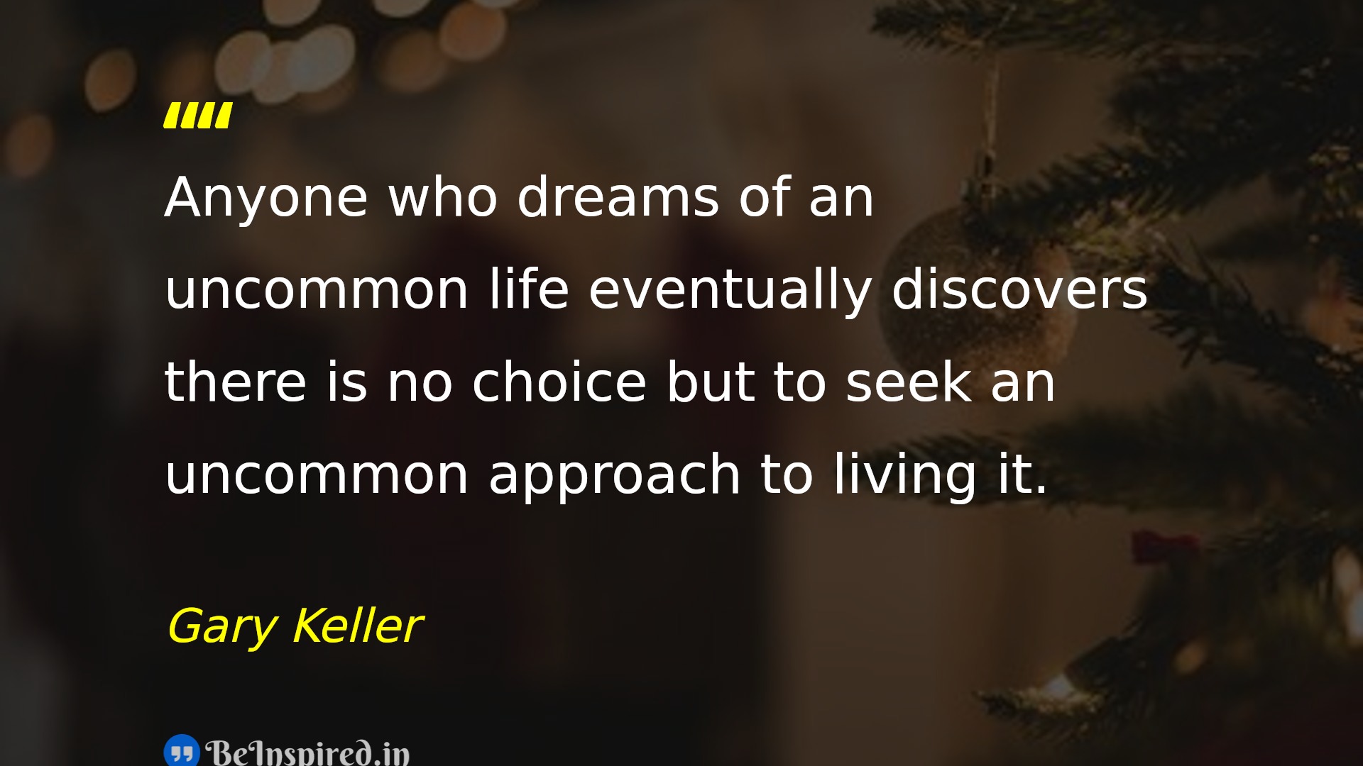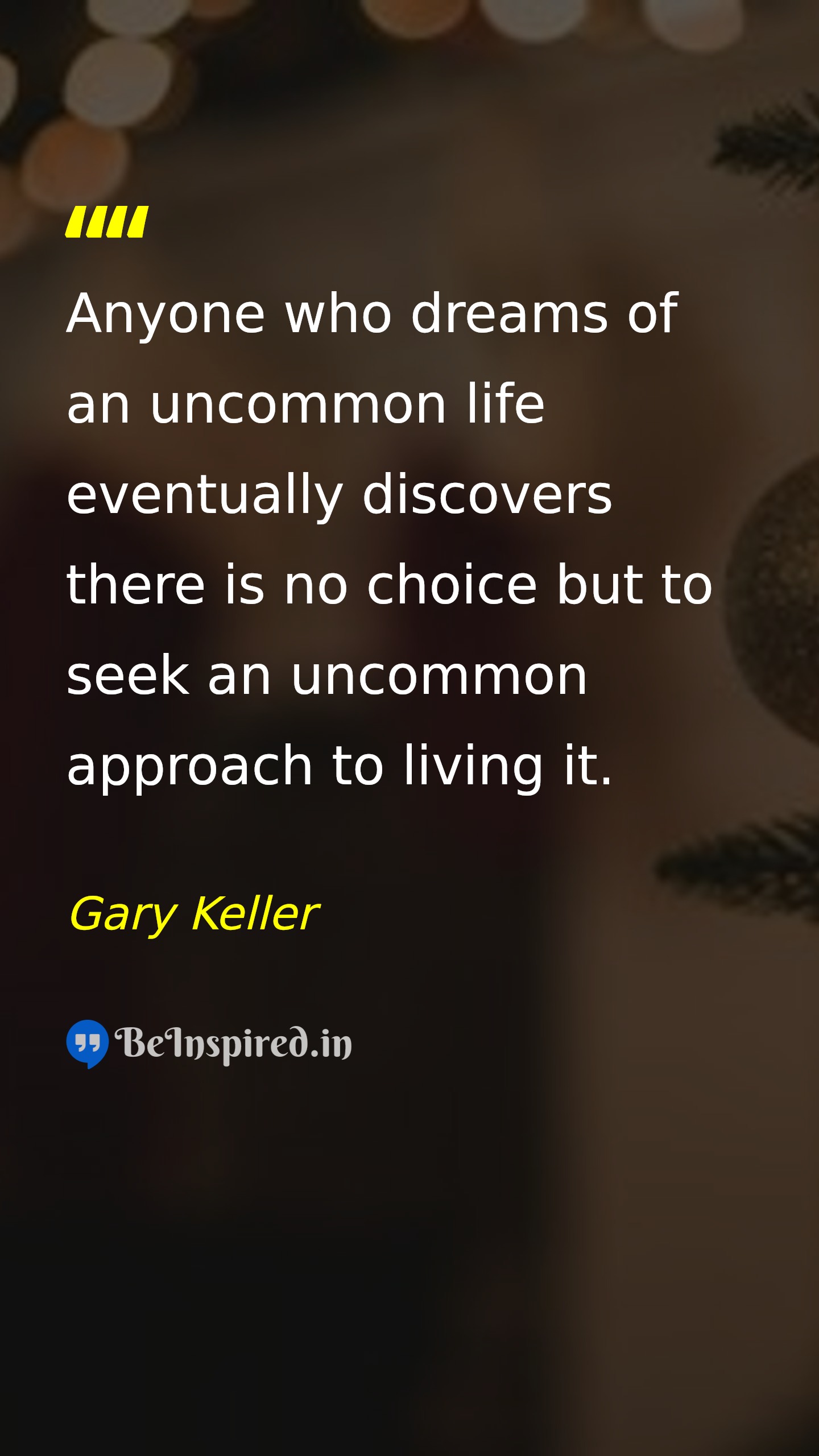 Anyone who dreams of an uncommon life eventually discovers there is no choice but to seek an uncommon approach to living it.