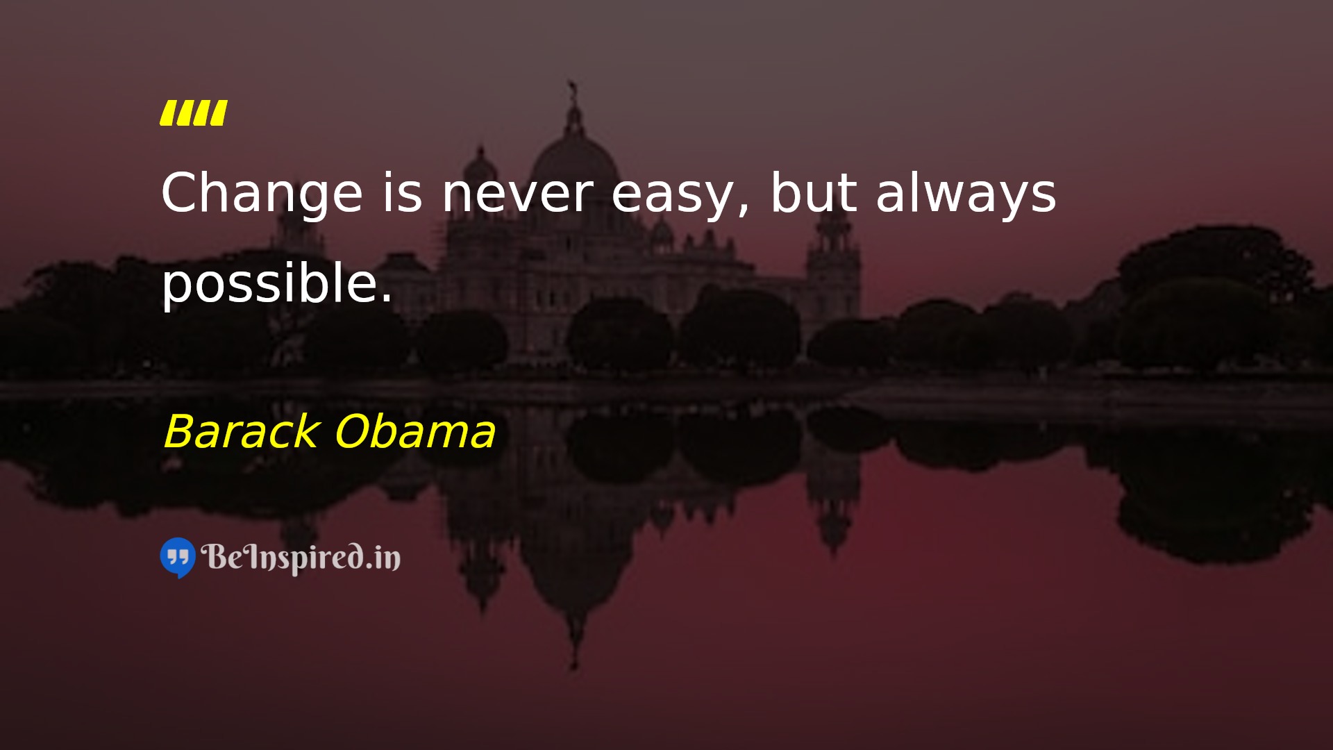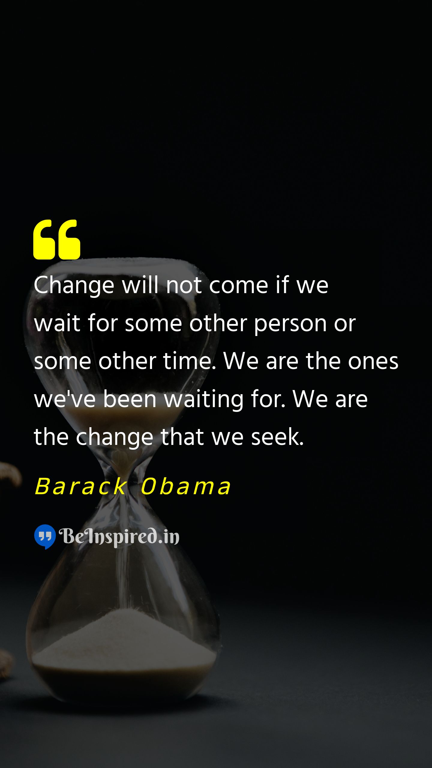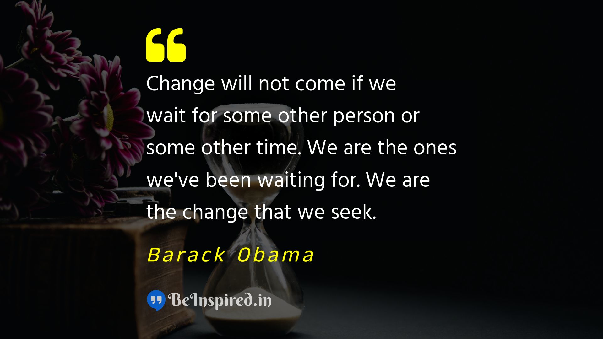 Change will not come if we wait for some other person or some other time. We are the ones we've been waiting for. We are the change that we seek.