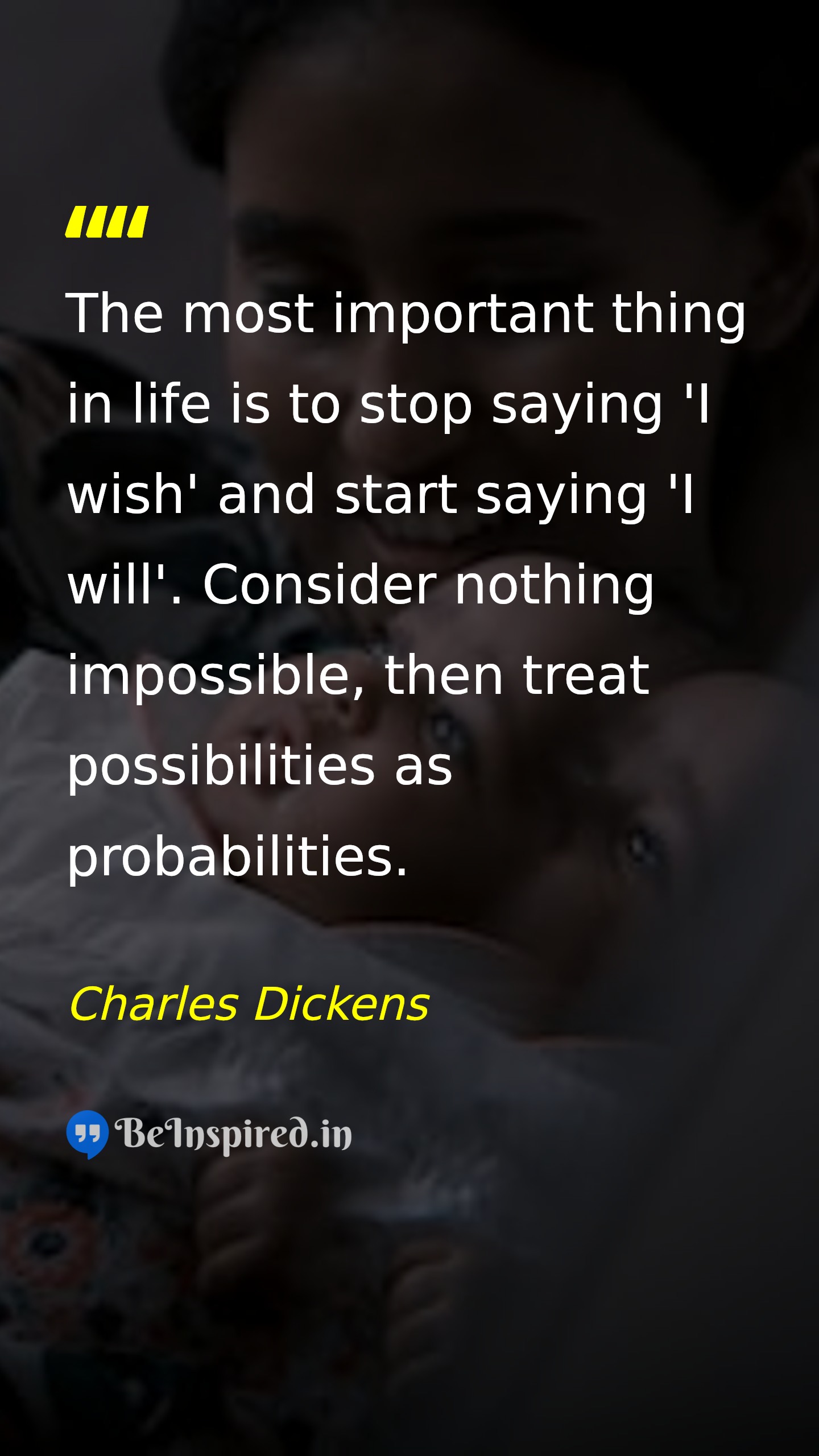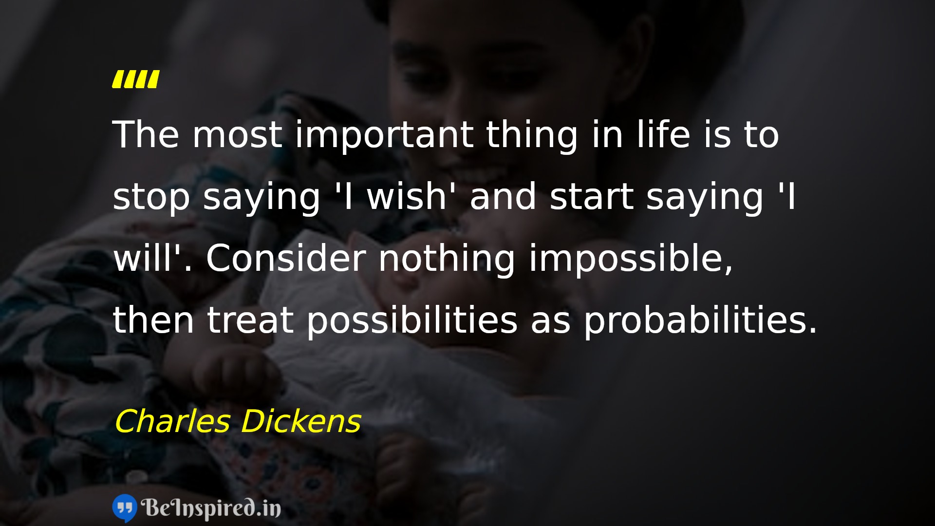 The most important thing in life is to stop saying 'I wish' and start saying 'I will'. Consider nothing impossible, then treat possibilities as probabilities.