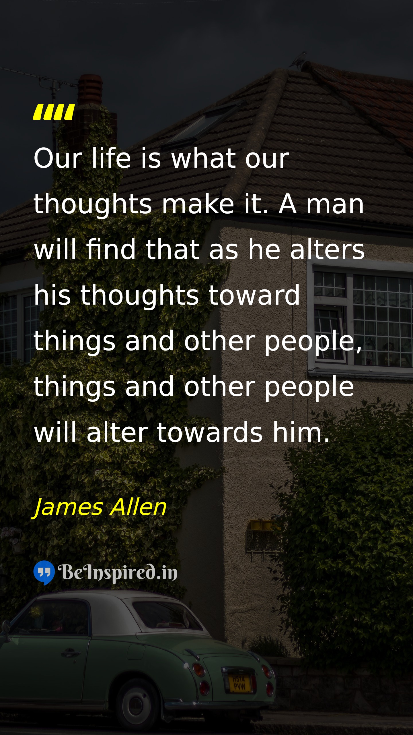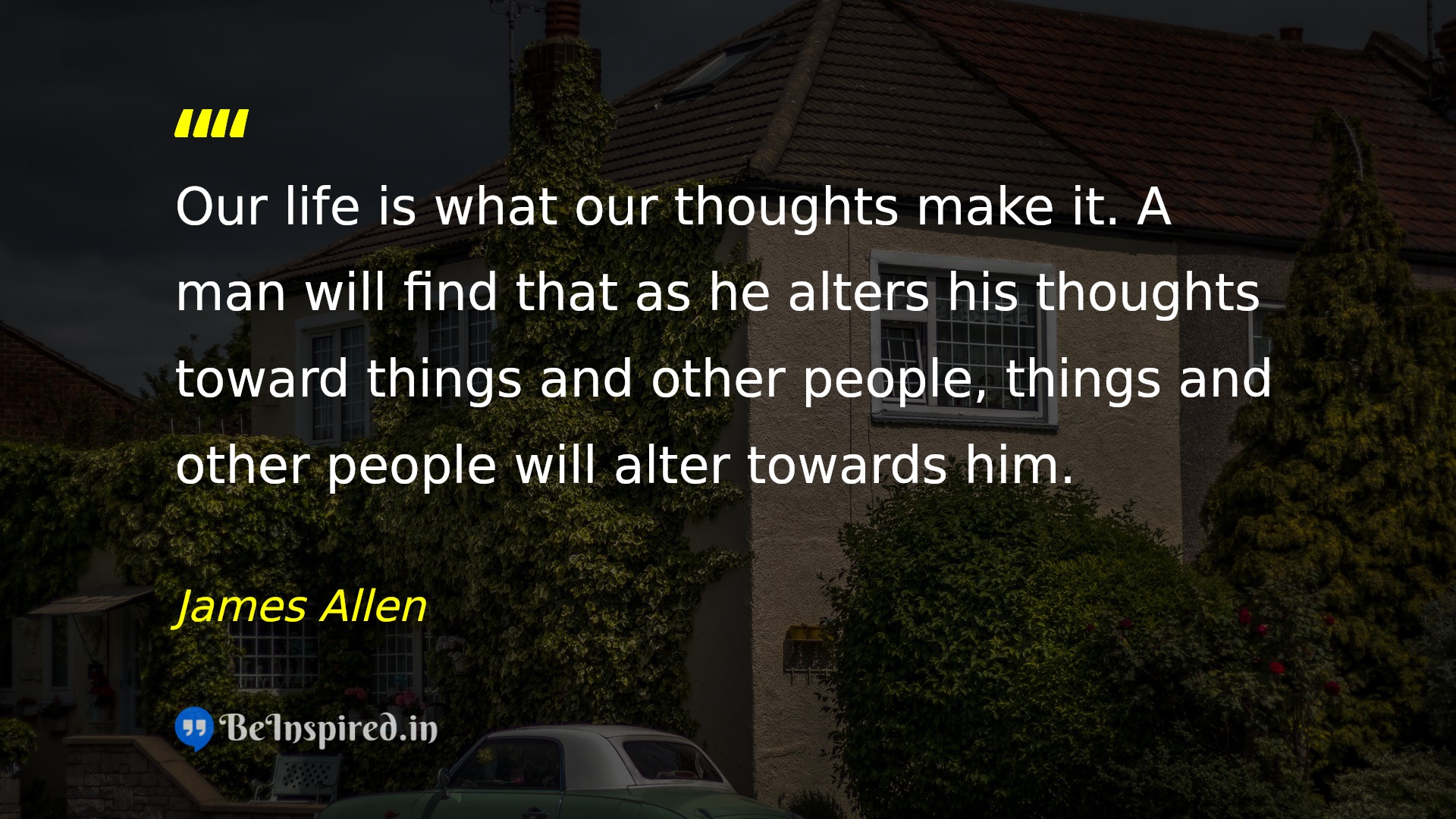 Our life is what our thoughts make it. A man will find that as he alters his thoughts toward things and other people, things and other people will alter towards him.