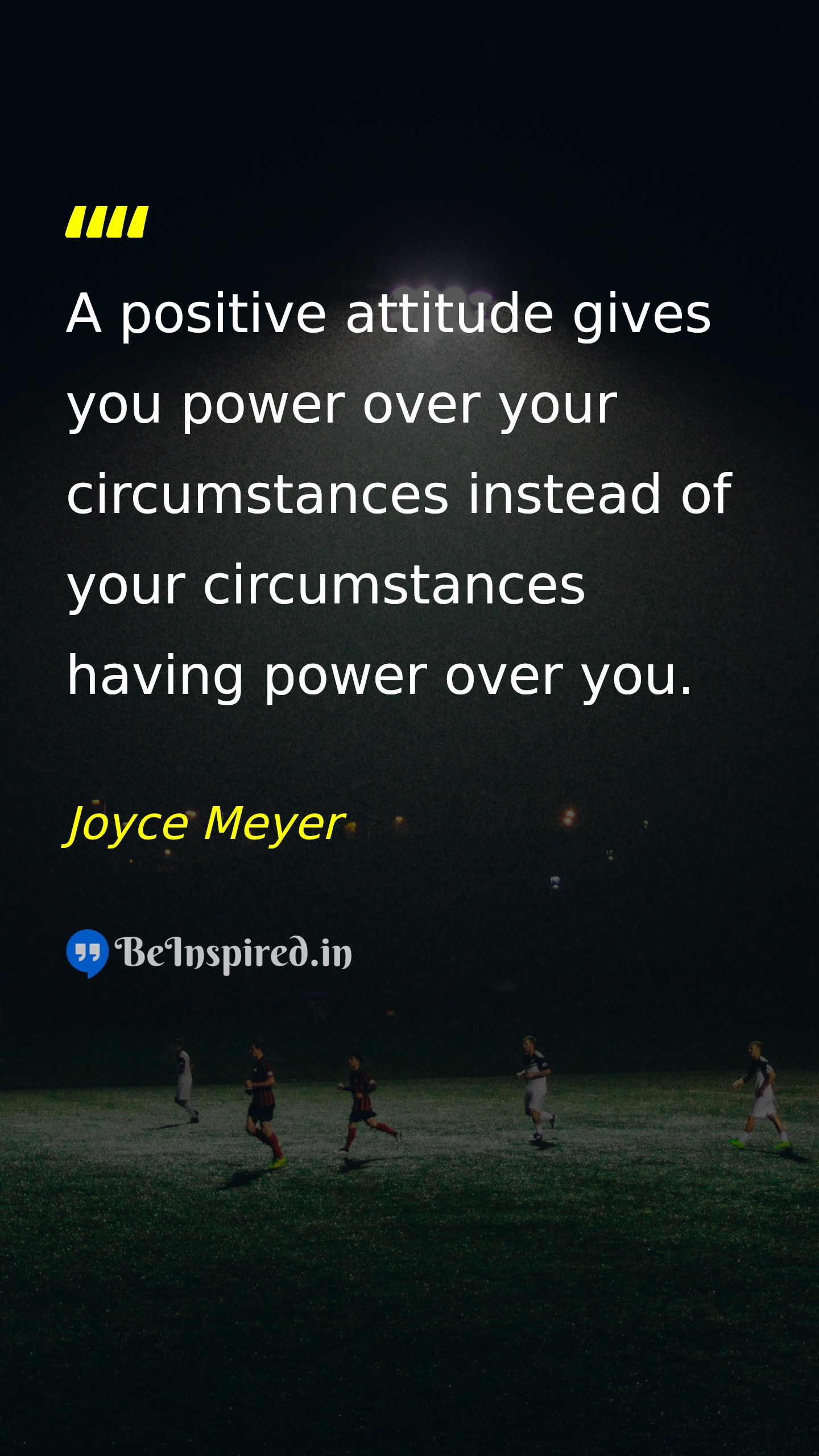 A positive attitude gives you power over your circumstances instead of your circumstances having power over you.