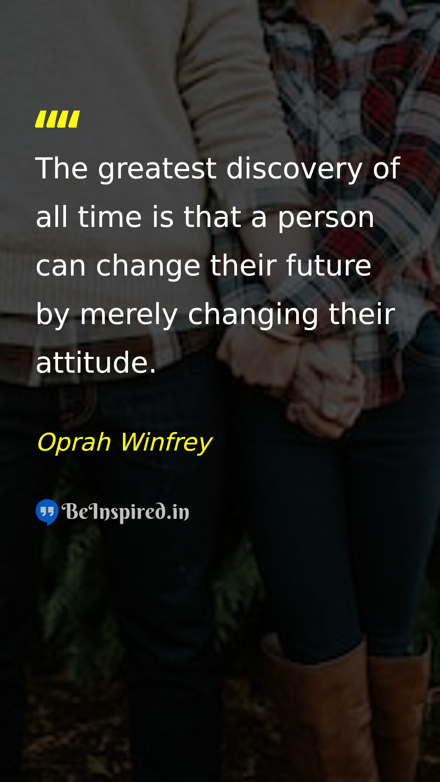 The greatest discovery of all time is that a person can change their future by merely changing their attitude.