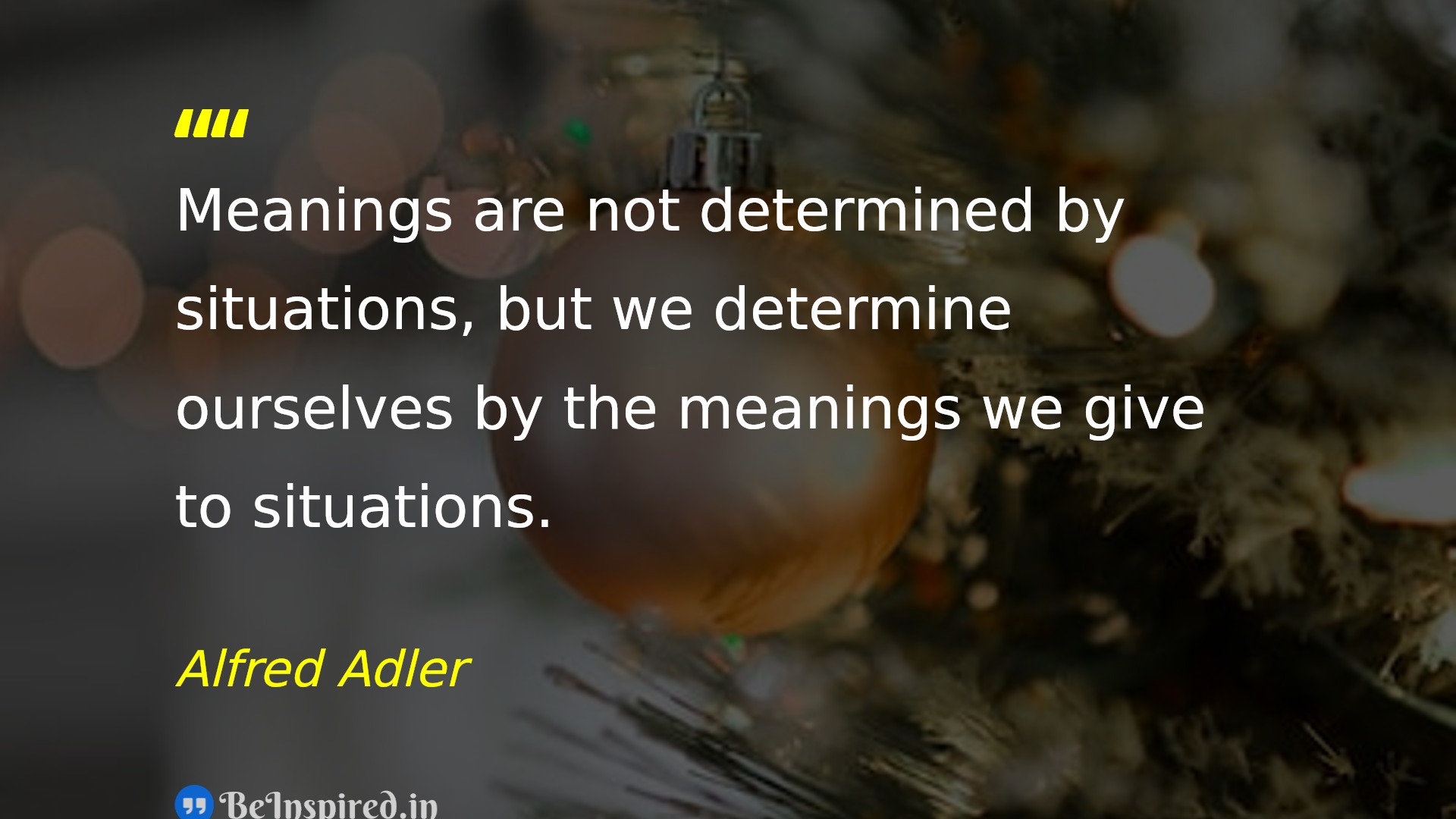 Meanings are not determined by situations, but we determine ourselves by the meanings we give to situations.