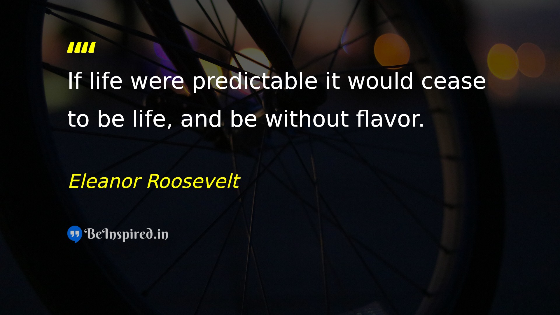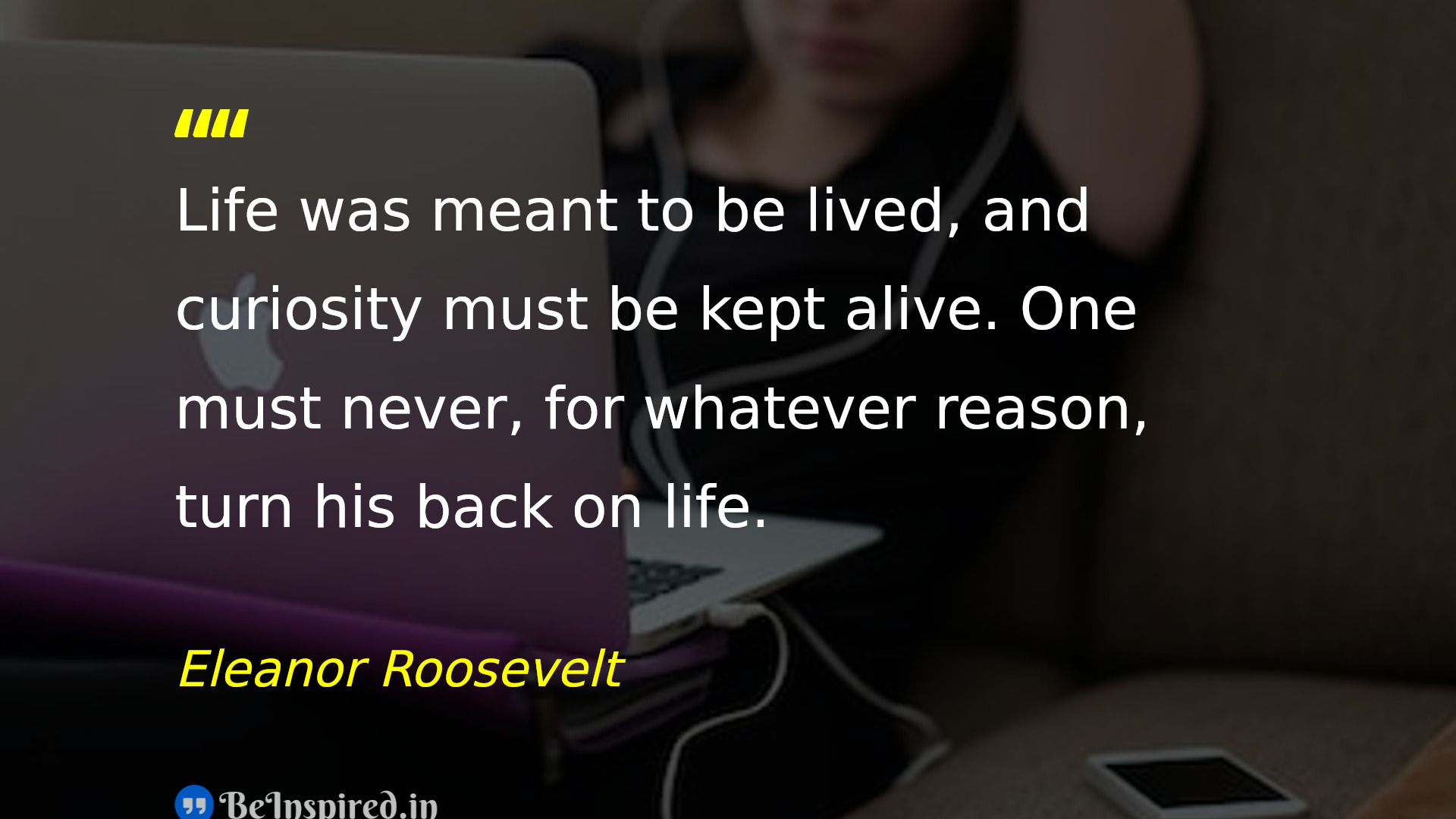 Life was meant to be lived, and curiosity must be kept alive. One must never, for whatever reason, turn his back on life.