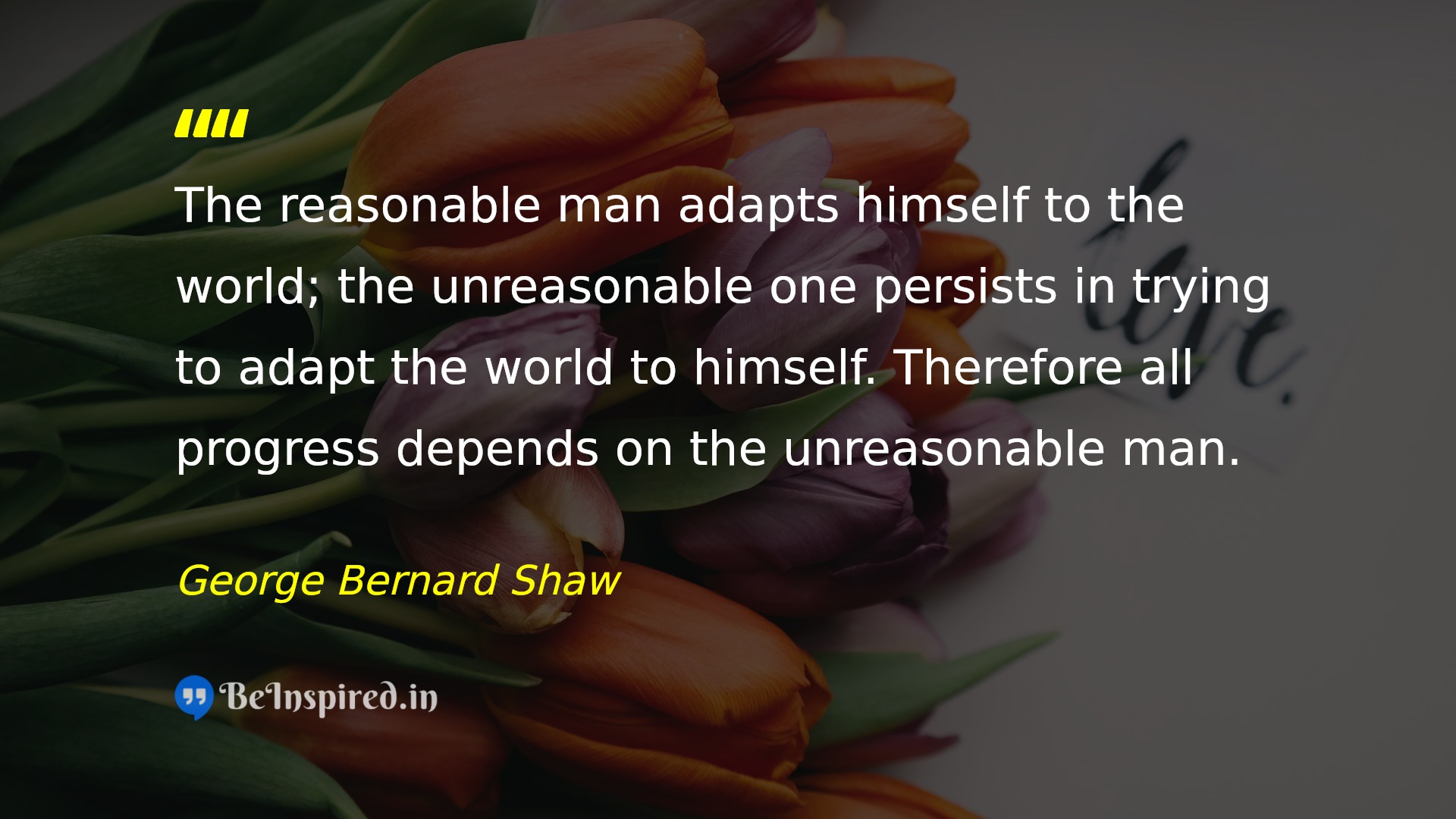 The reasonable man adapts himself to the world; the unreasonable one persists in trying to adapt the world to himself. Therefore all progress depends on the unreasonable man.