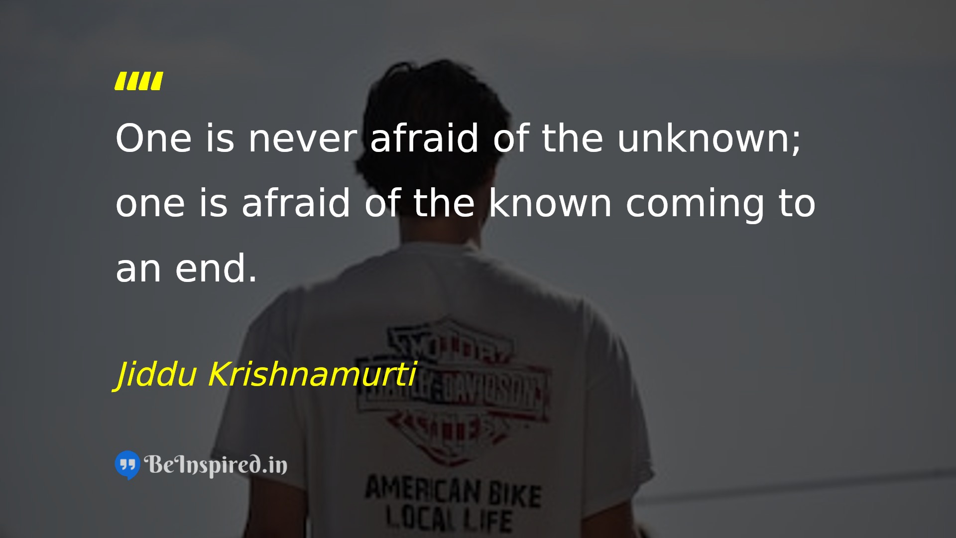 One is never afraid of the unknown; one is afraid of the known coming to an end.