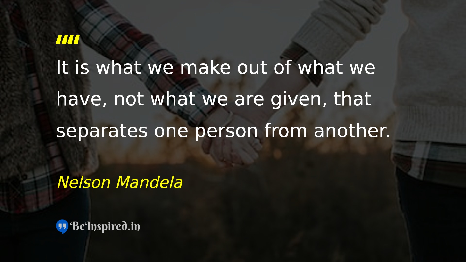 It is what we make out of what we have, not what we are given, that separates one person from another.