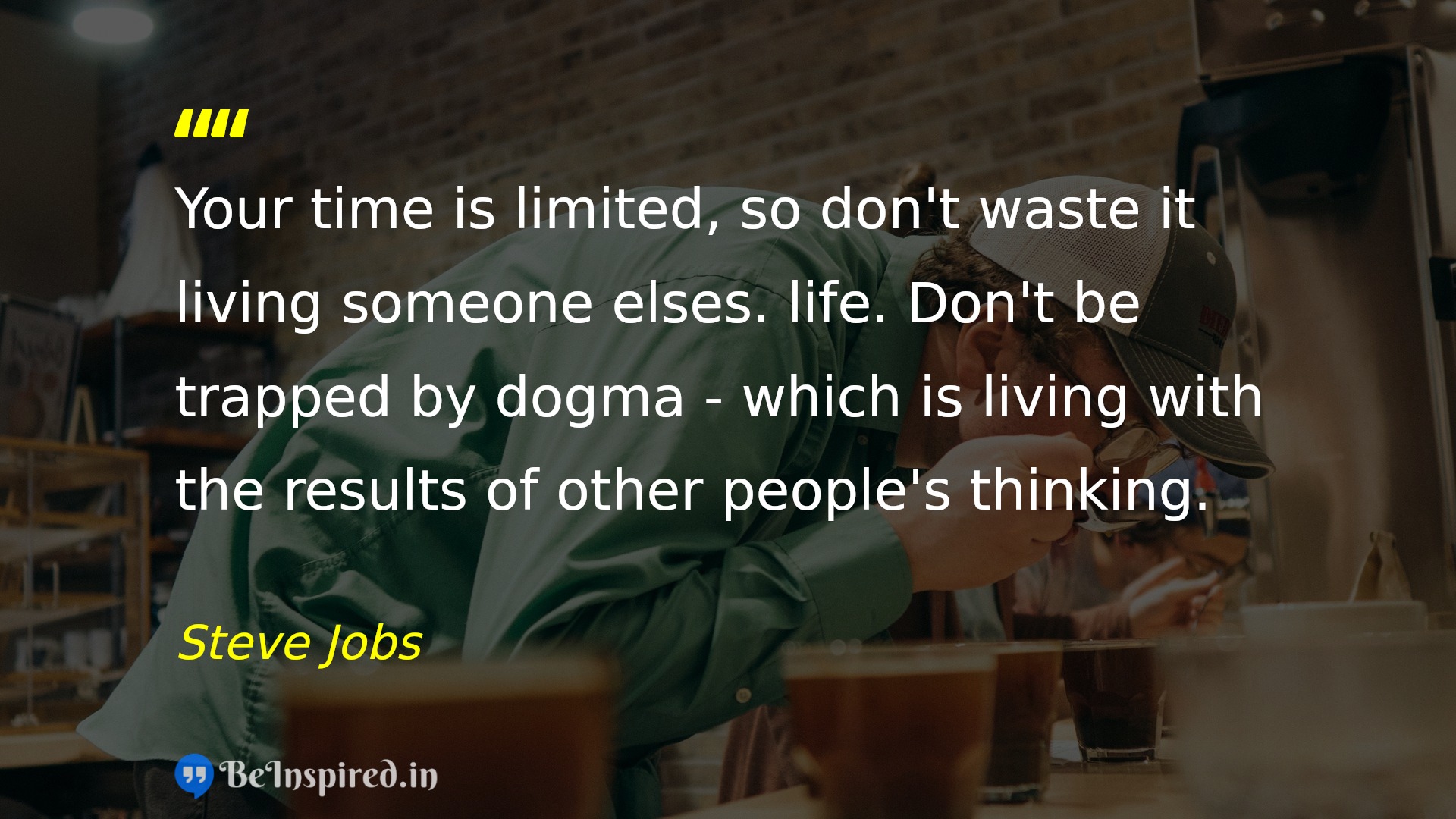 Your time is limited, so don't waste it living someone elses. life. Don't be trapped by dogma - which is living with the results of other people's thinking.