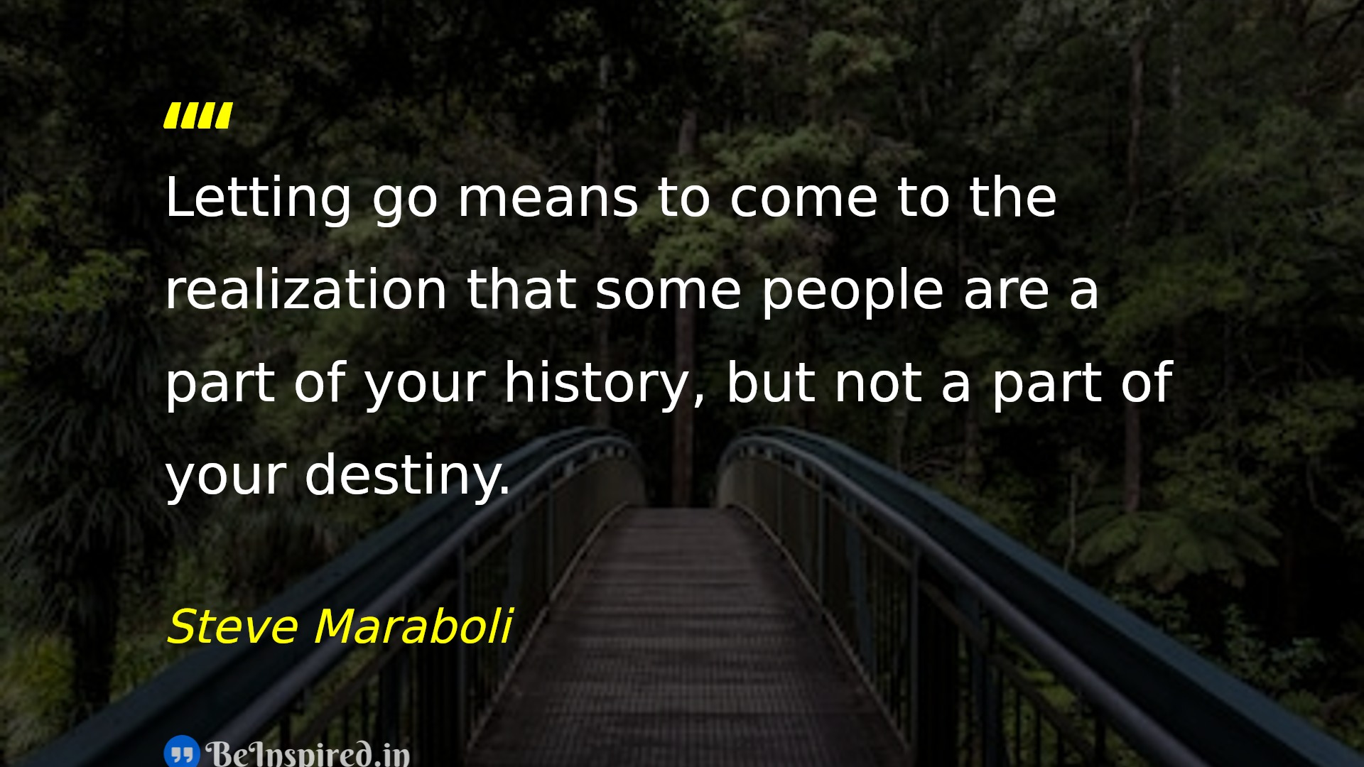 Letting go means to come to the realization that some people are a part of your history, but not a part of your destiny.