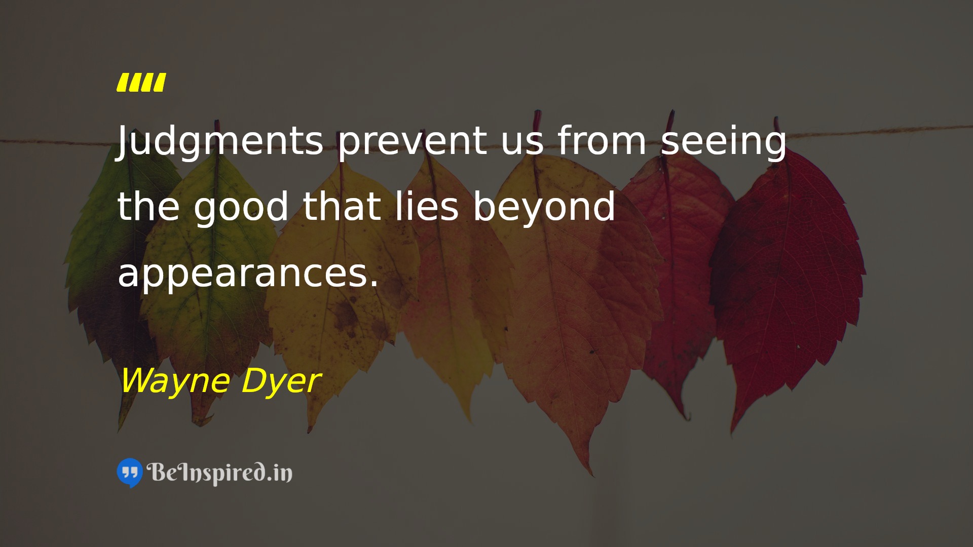Judgments prevent us from seeing the good that lies beyond appearances.