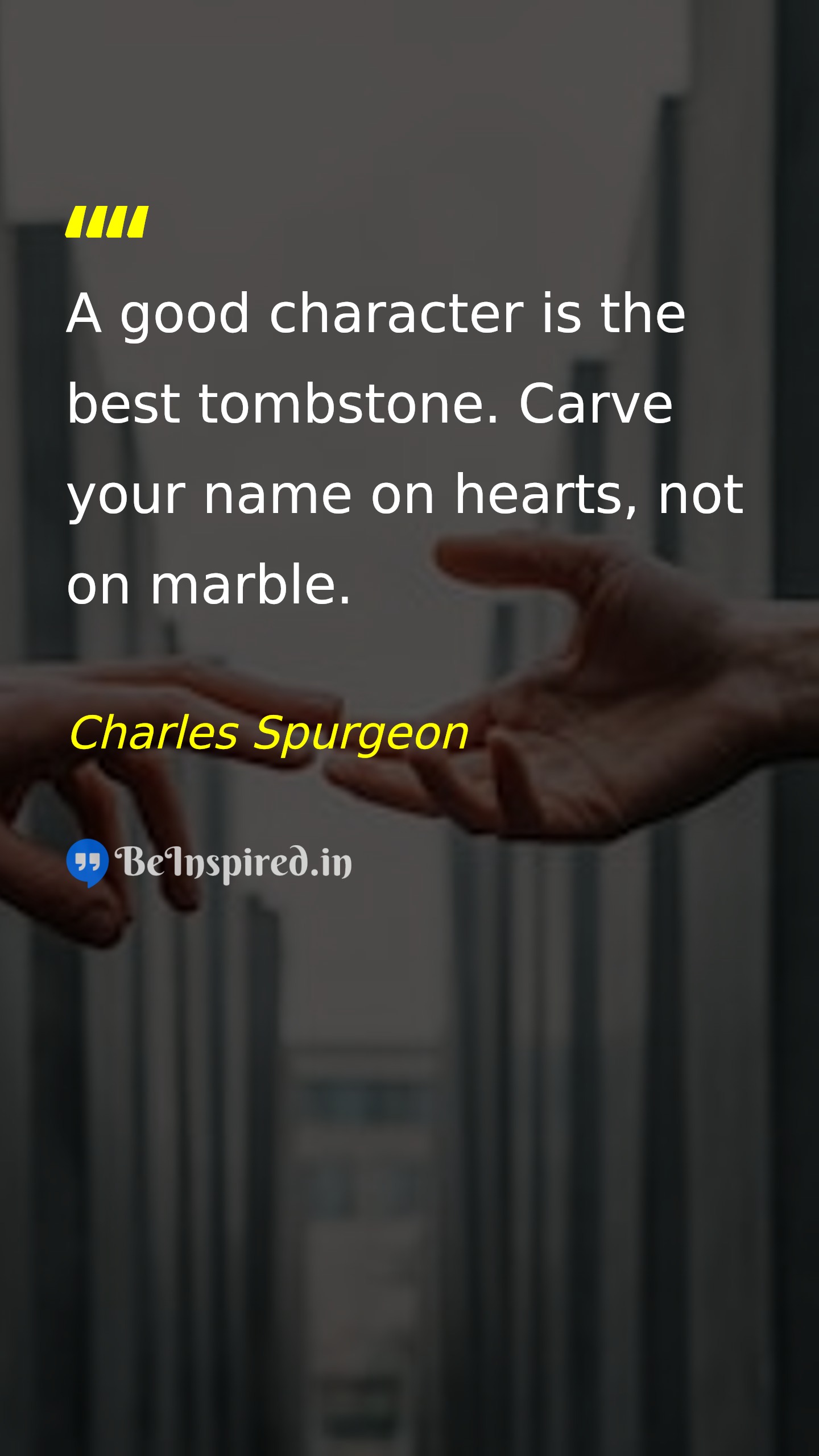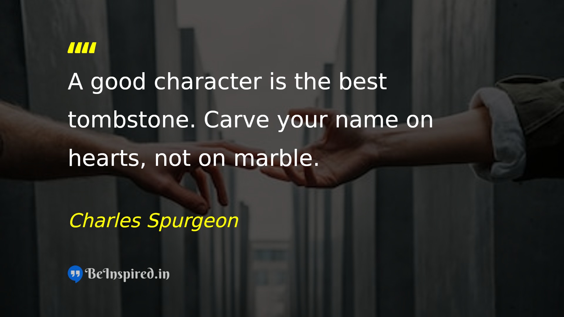 A good character is the best tombstone. Carve your name on hearts, not on marble.