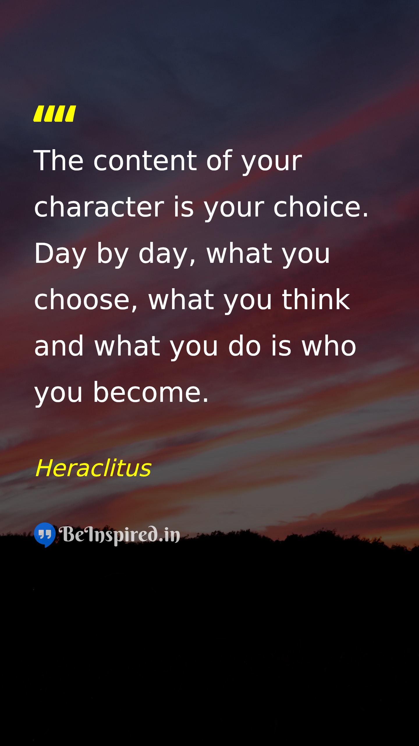 The content of your character is your choice. Day by day, what you choose, what you think and what you do is who you become.