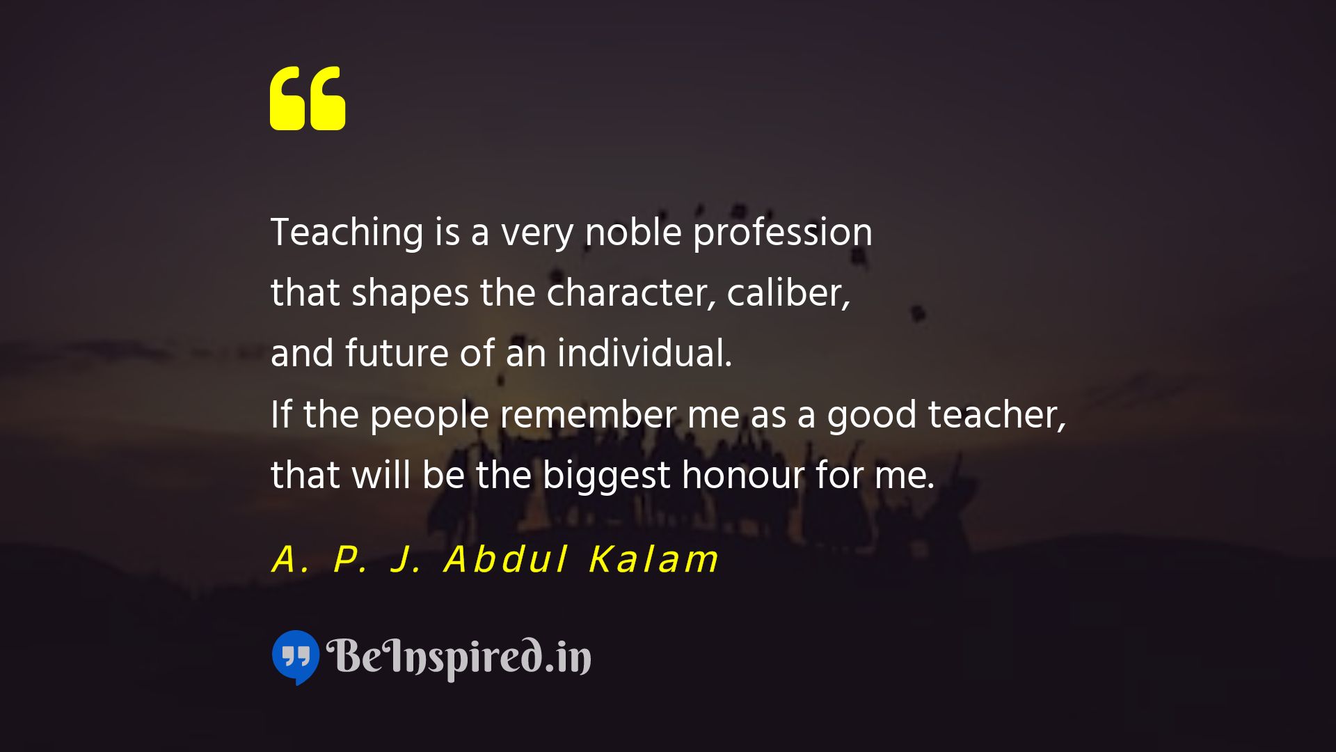 Teaching is a very noble profession that shapes the character, caliber, and future of an individual. If the people remember me as a good teacher, that will be the biggest honour for me.