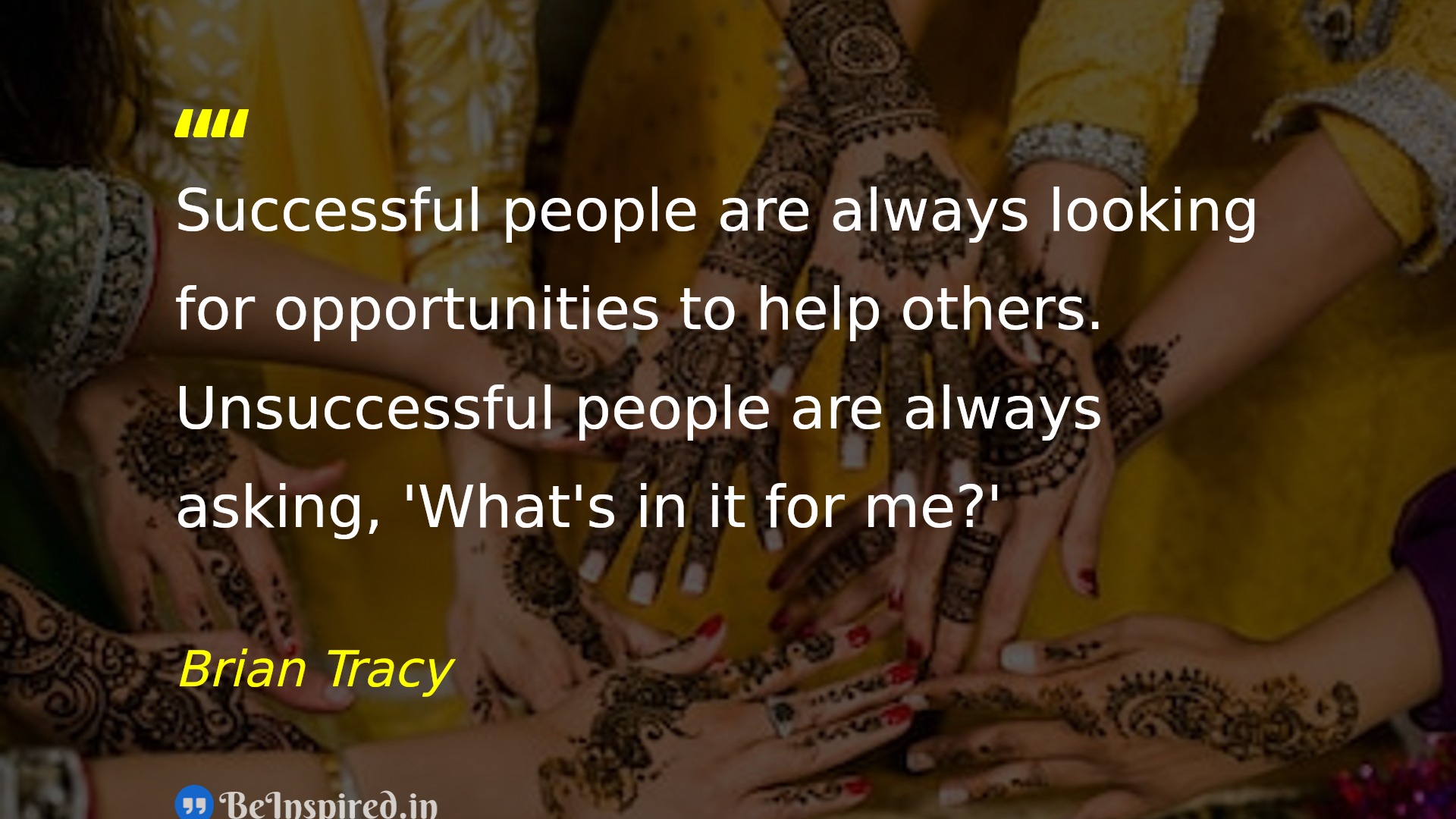 Successful people are always looking for opportunities to help others. Unsuccessful people are always asking, 'What's in it for me?'