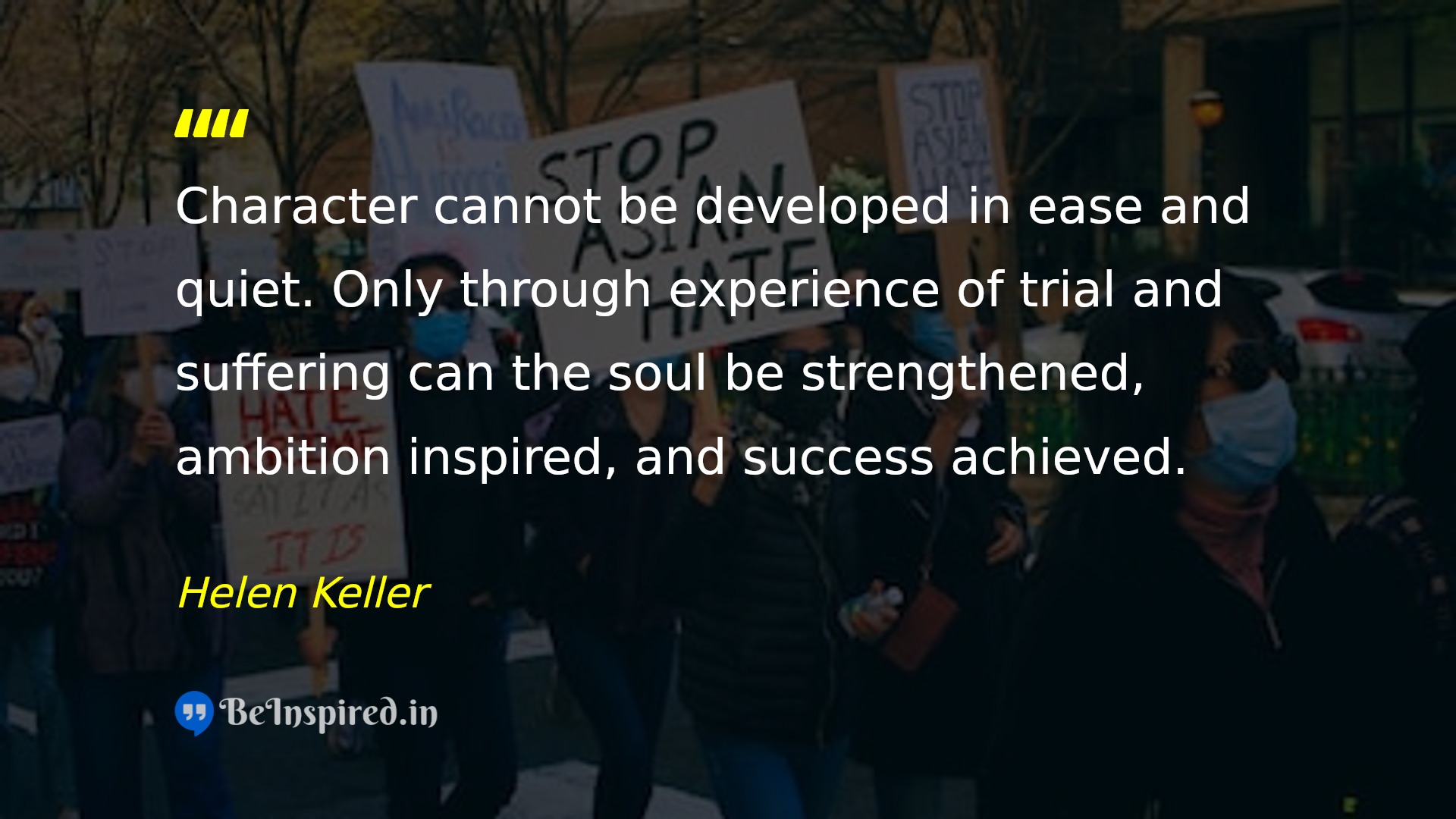 Character cannot be developed in ease and quiet. Only through experience of trial and suffering can the soul be strengthened, ambition inspired, and success achieved.