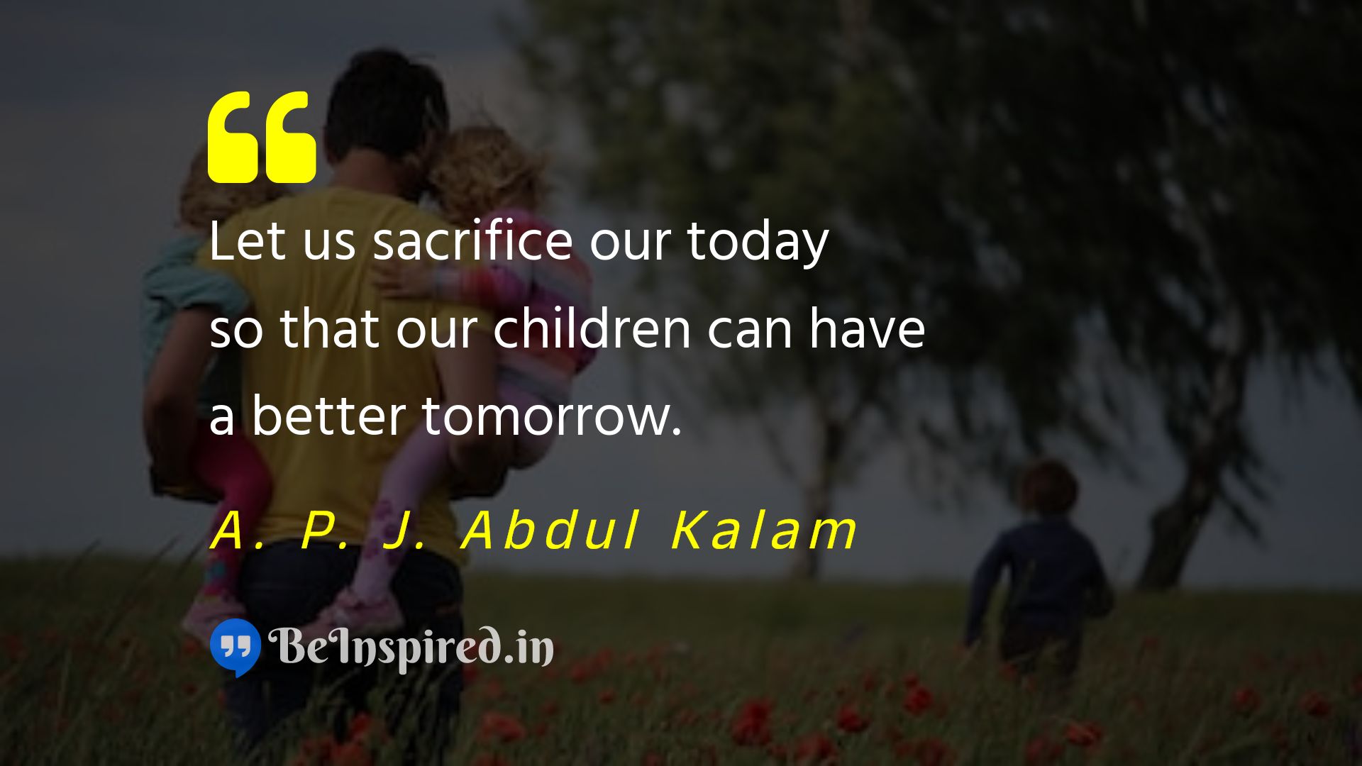 Let us sacrifice our today so that our children can have a better tomorrow.