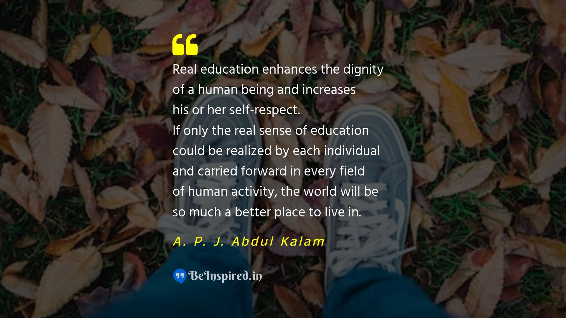 Real education enhances the dignity of a human being and increases his or her self respect. If only the real sense of education could be realized by each individual and carried forward in every field of human activity, the world will be so much a better place to live in.