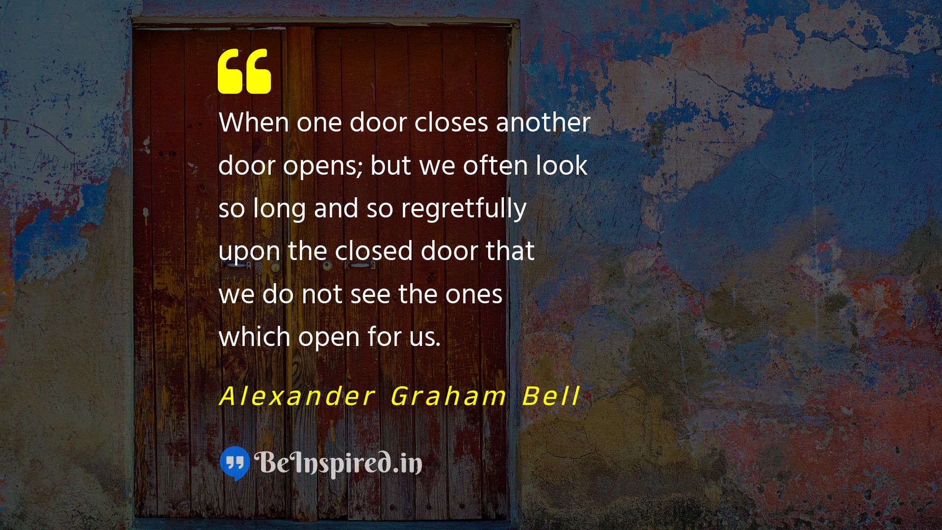 When one door closes another door opens; but we often look so long and so regretfully upon the closed door that we do not see the ones which open for us.