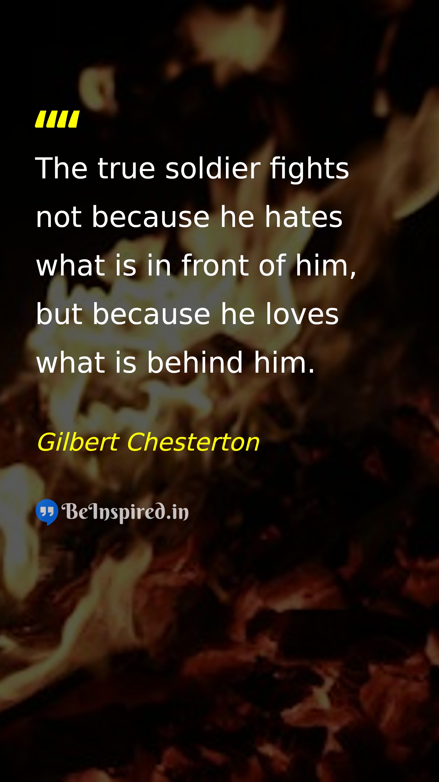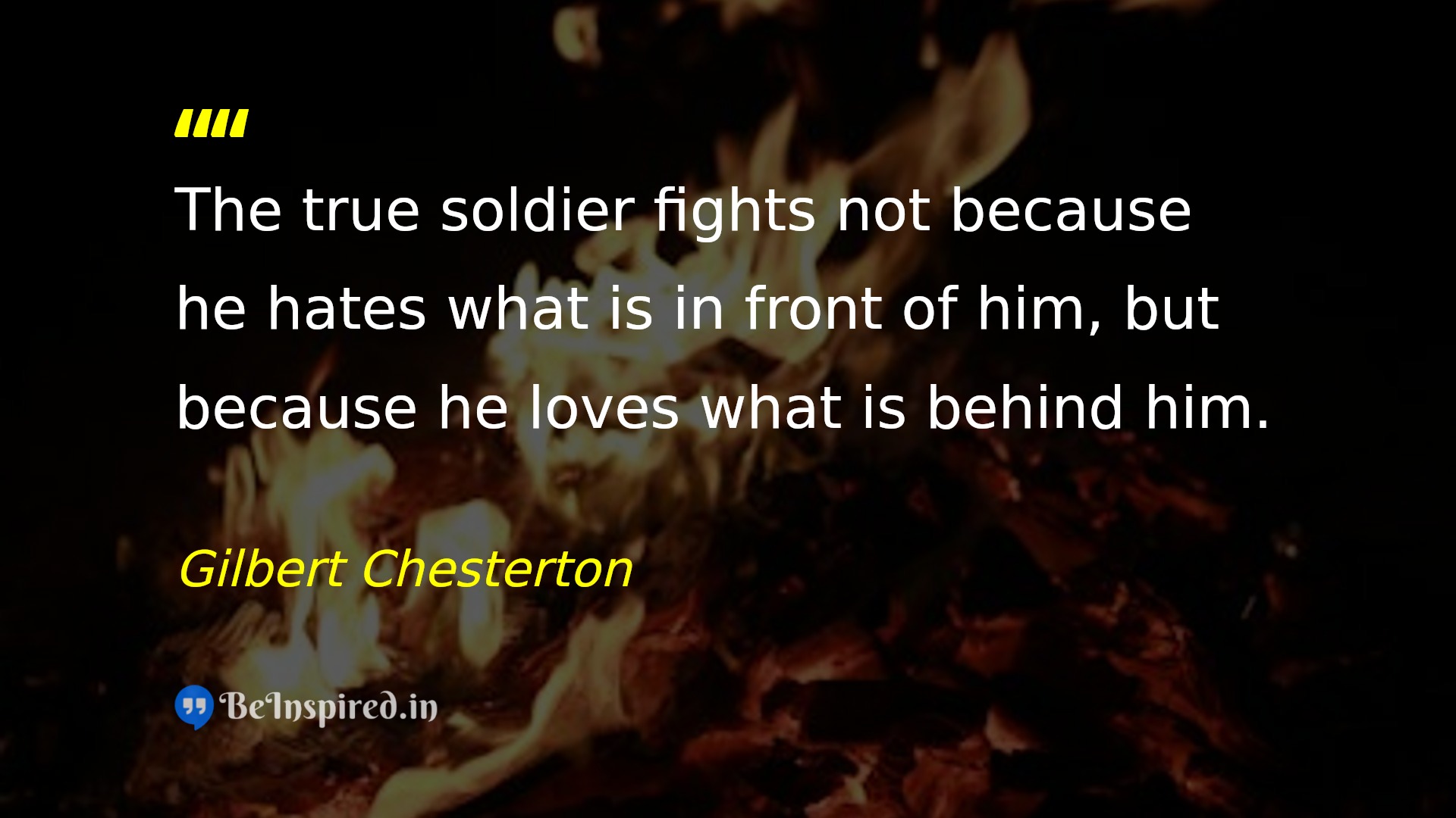 The true soldier fights not because he hates what is in front of him, but because he loves what is behind him.