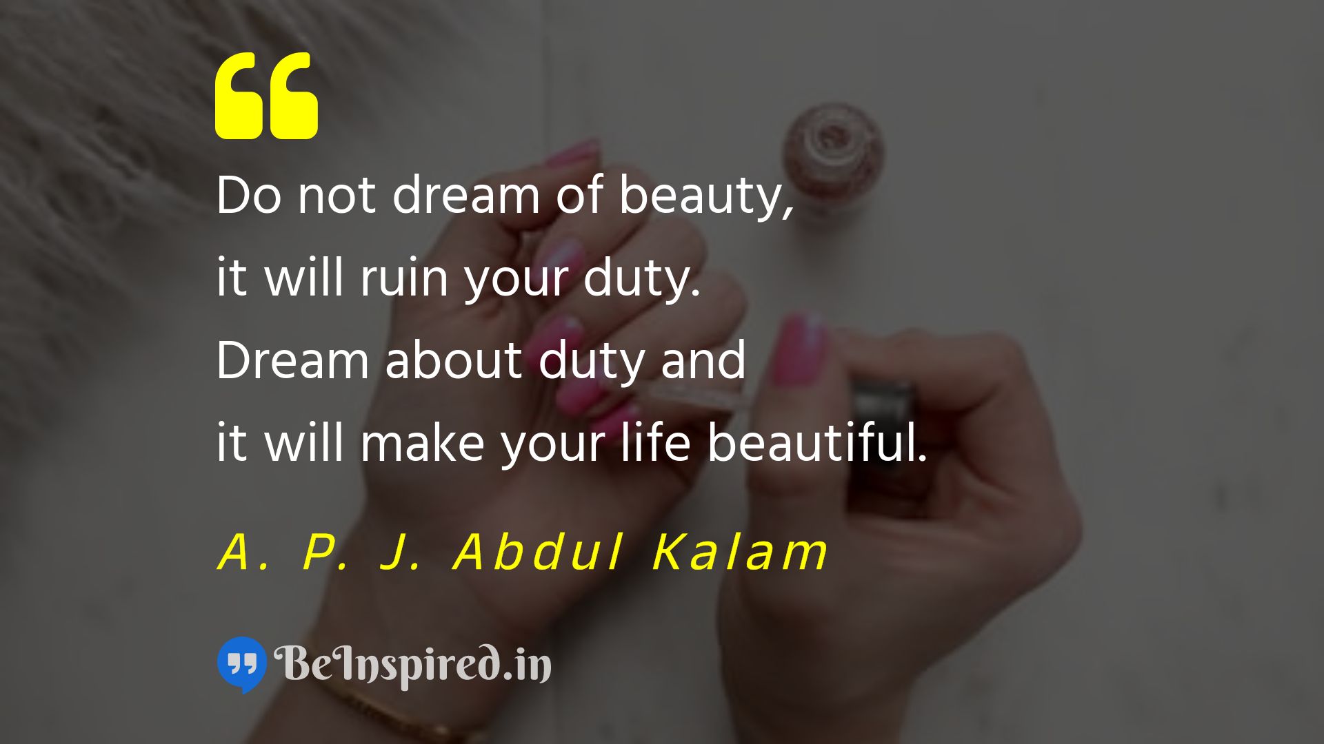 Do not dream of beauty, it will ruin your duty. Dream about duty and it will make your life beautiful.
