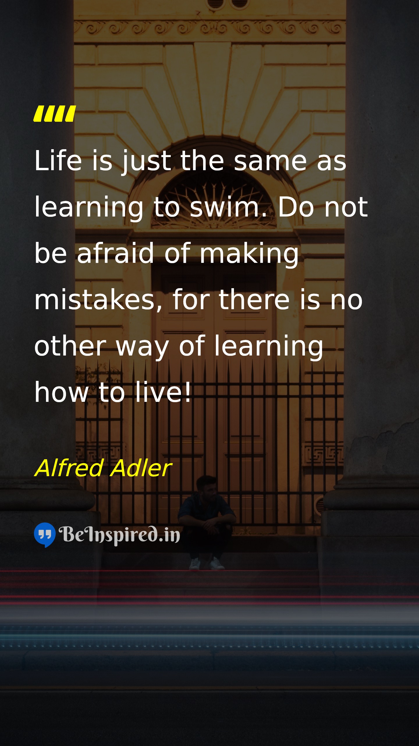 Life is just the same as learning to swim. Do not be afraid of making mistakes, for there is no other way of learning how to live!