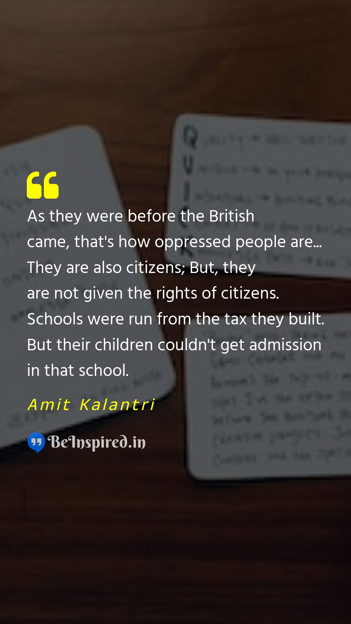 As they were before the British came, that's how oppressed people are... They are also citizens; But, they are not given the rights of citizens. Schools were run from the tax they built. But their children couldn't get admission in that school.