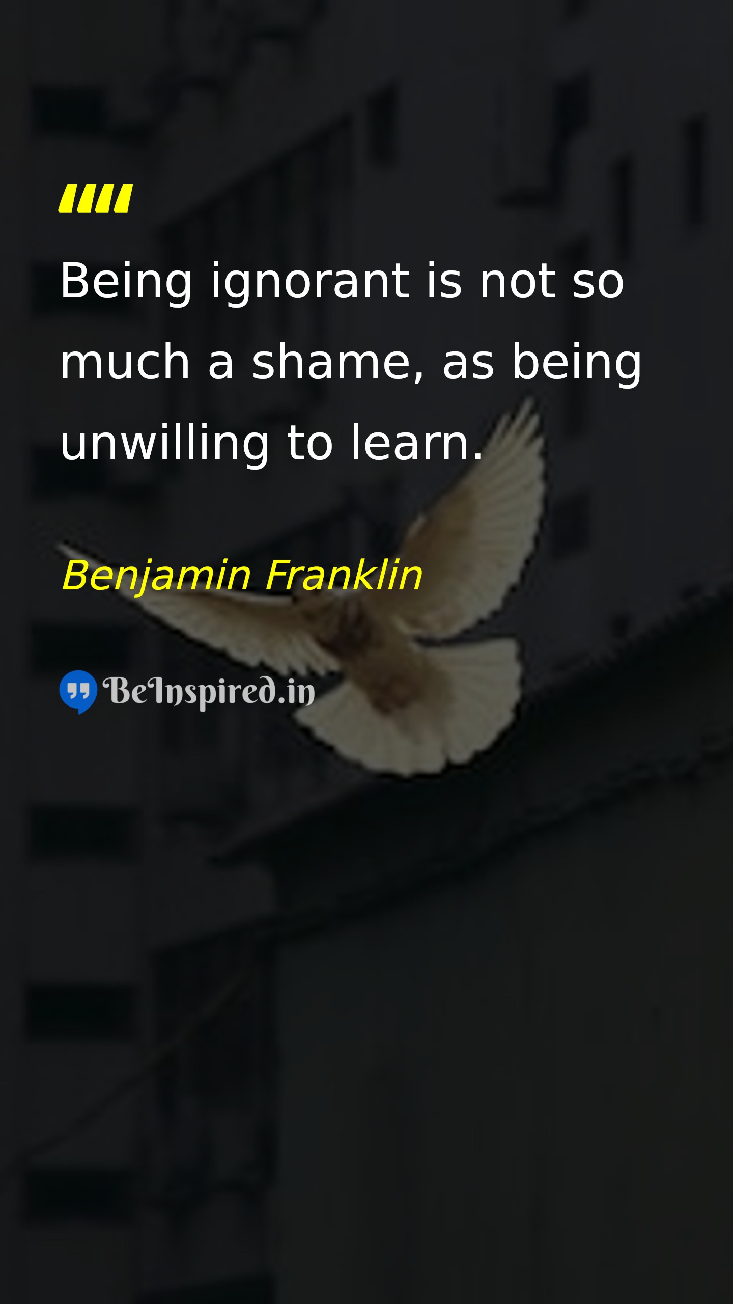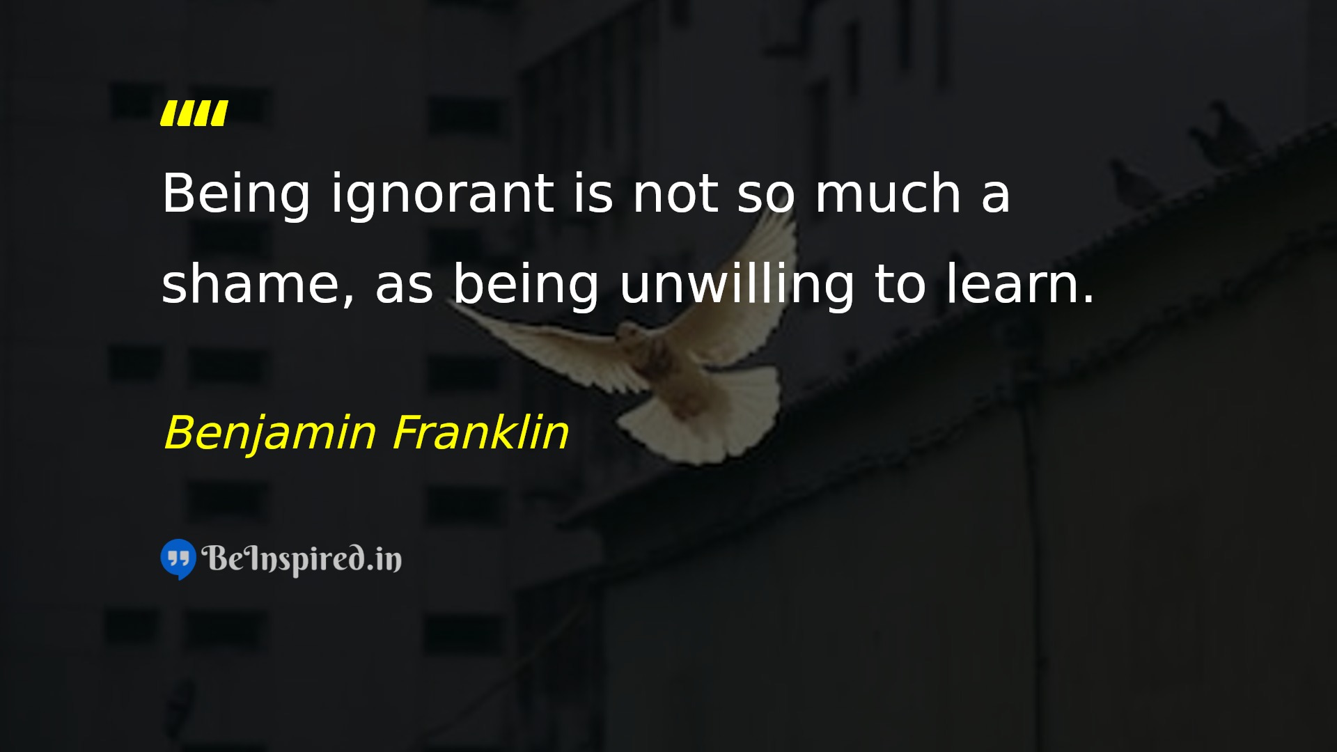 Being ignorant is not so much a shame, as being unwilling to learn.