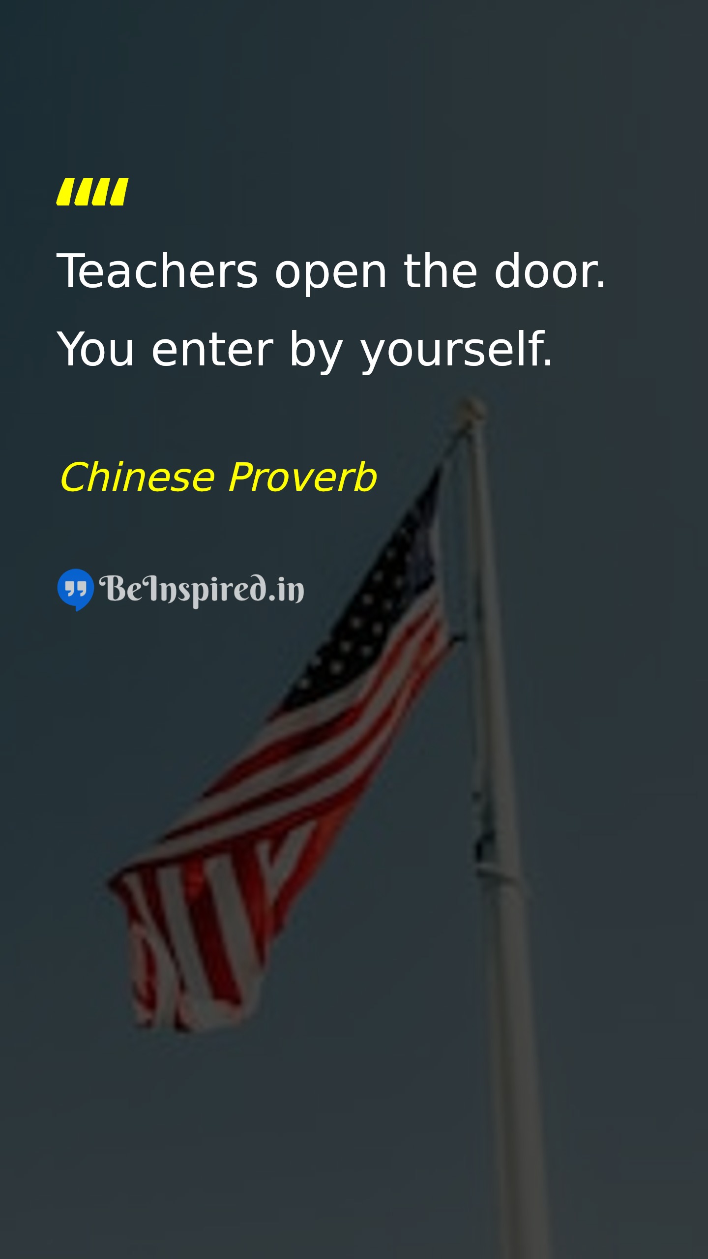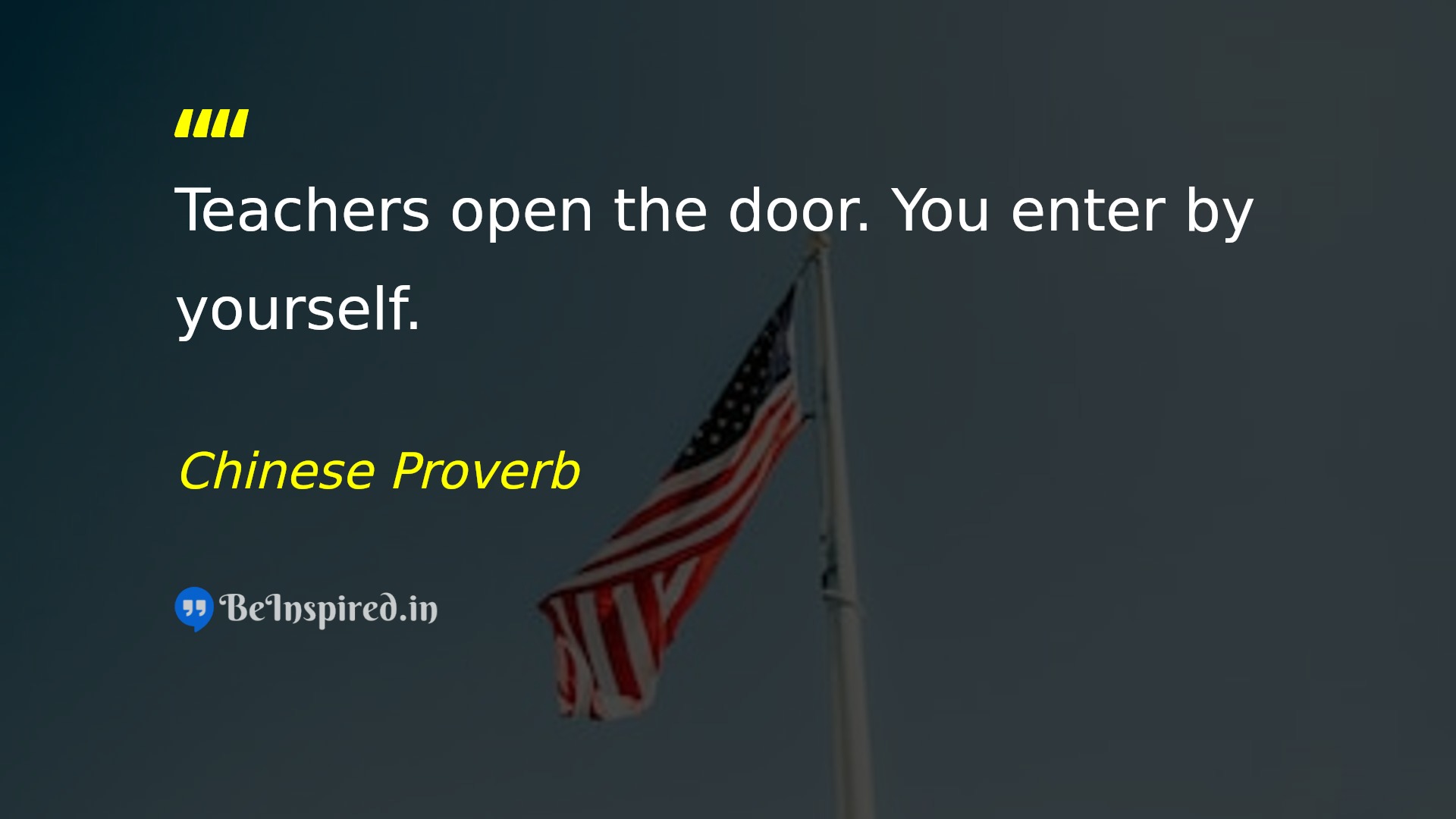 A good teacher opens the door for you, but you must enter the room by yourself.