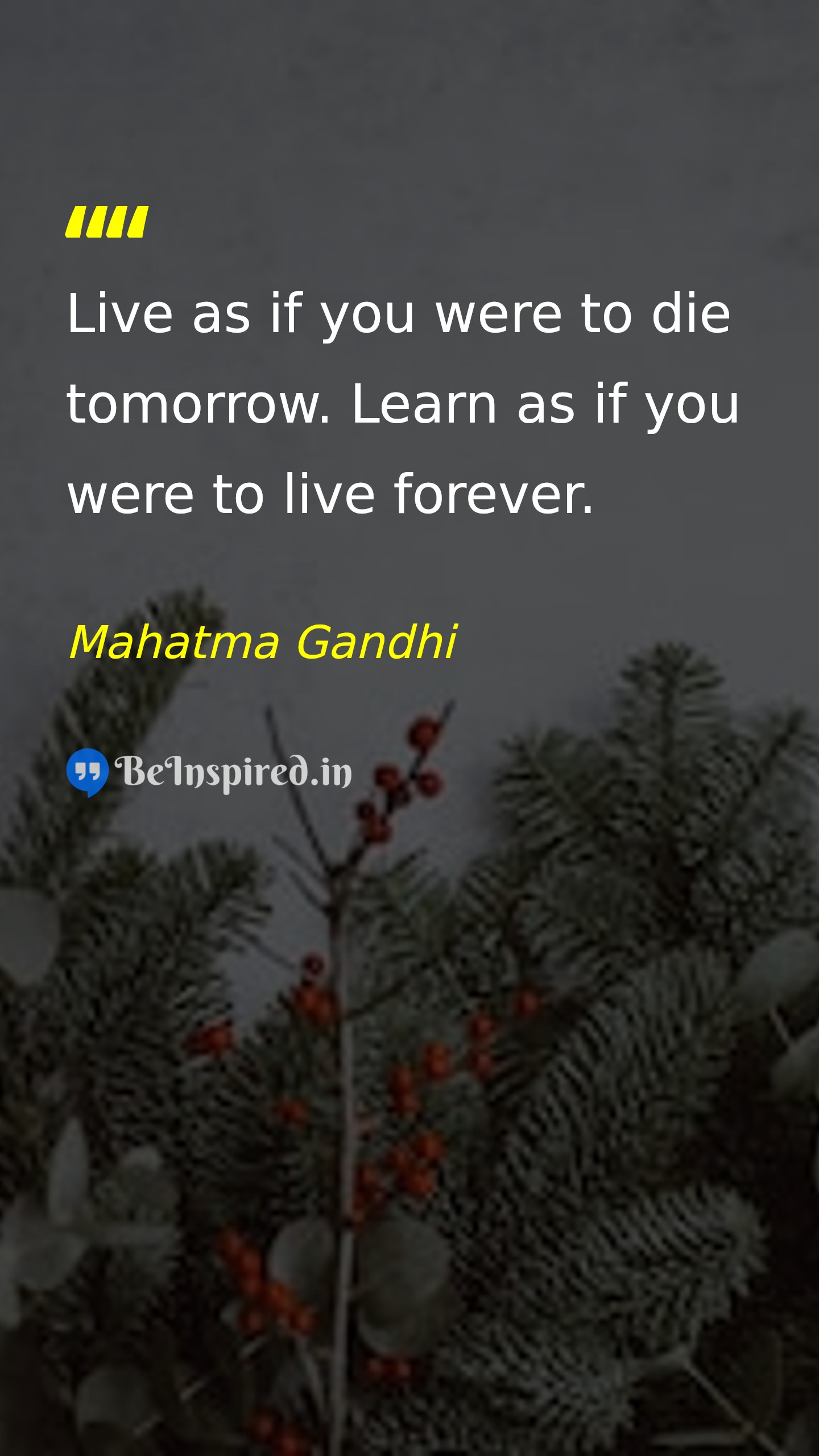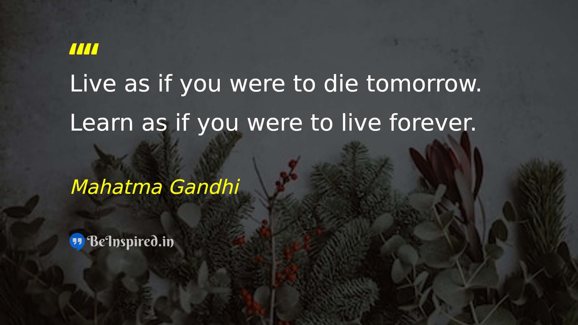 Live as if you were to die tomorrow. Learn as if you were to live forever.